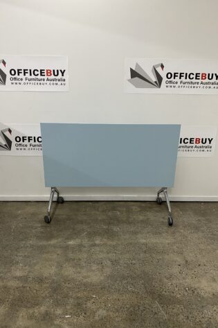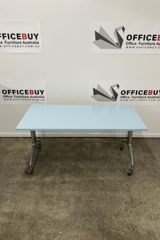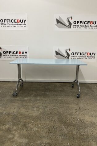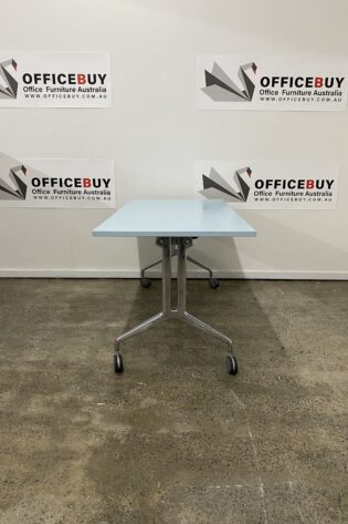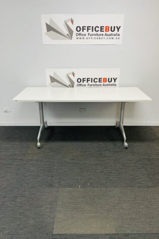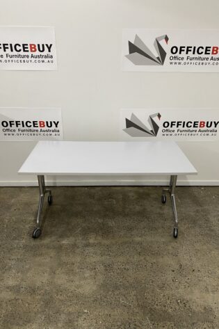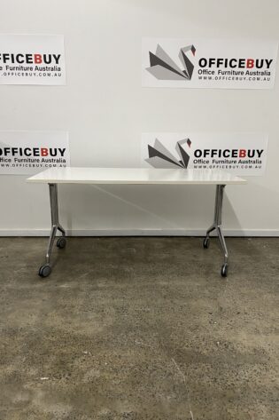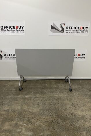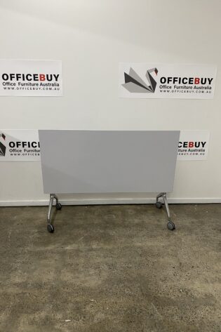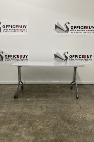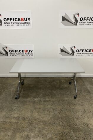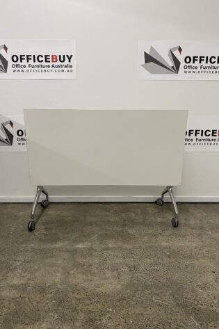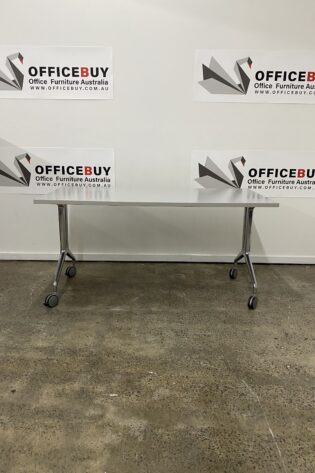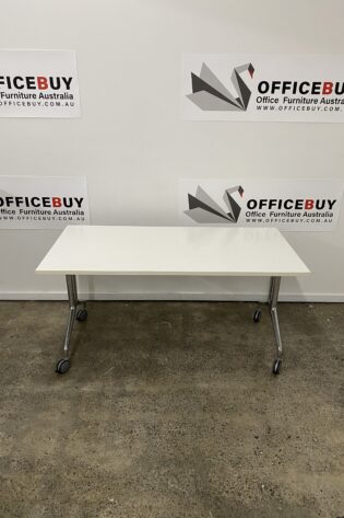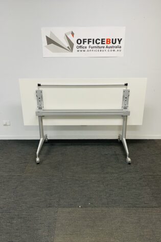 Mobile Flip Top Table-White Top with Silver Grey Base-1500mm