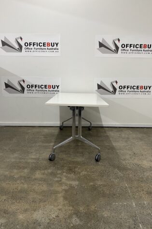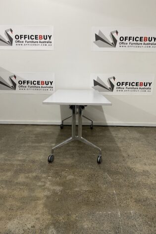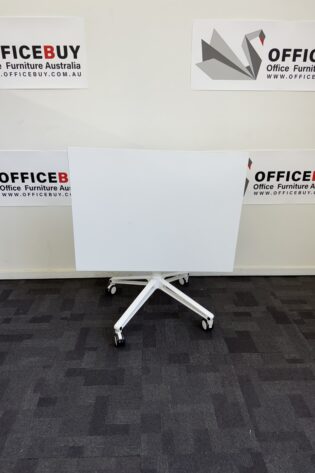 Second Hand Mobile Flip Top Table with White Base-White-1000mm x 750mm