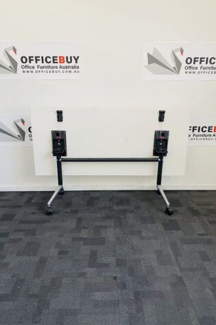 Mobile Flip Top Table-White Top with Black Base-1500mm x 750mm
