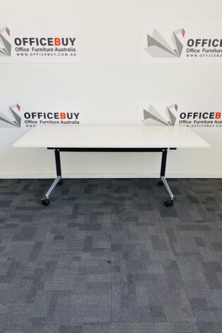 Mobile Flip Top Table-White Top with Black Base-1800mm x 900mm