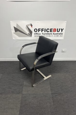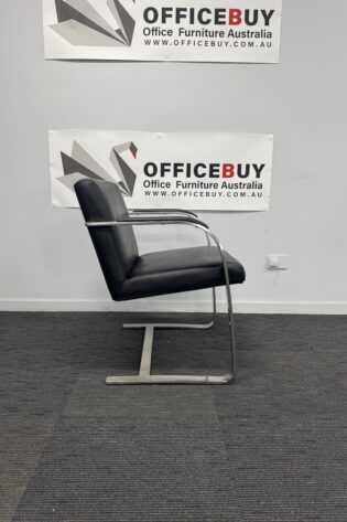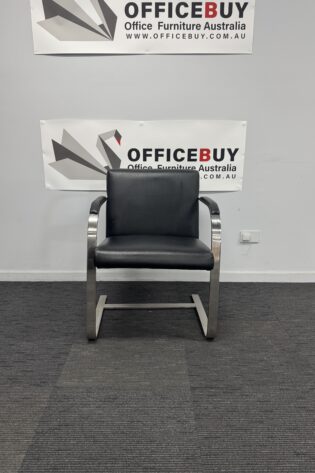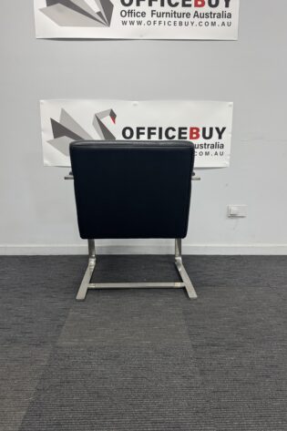 Second Hand Visitor Chair with Armrests-Blue fabric with Chrome Legs