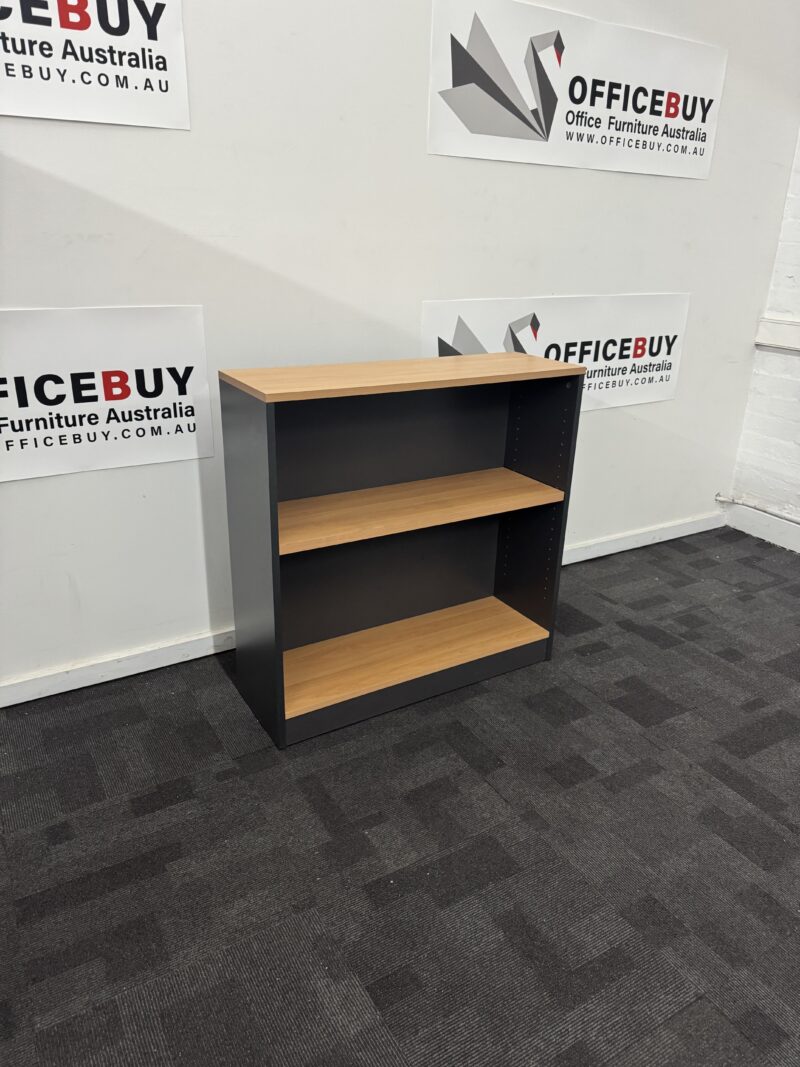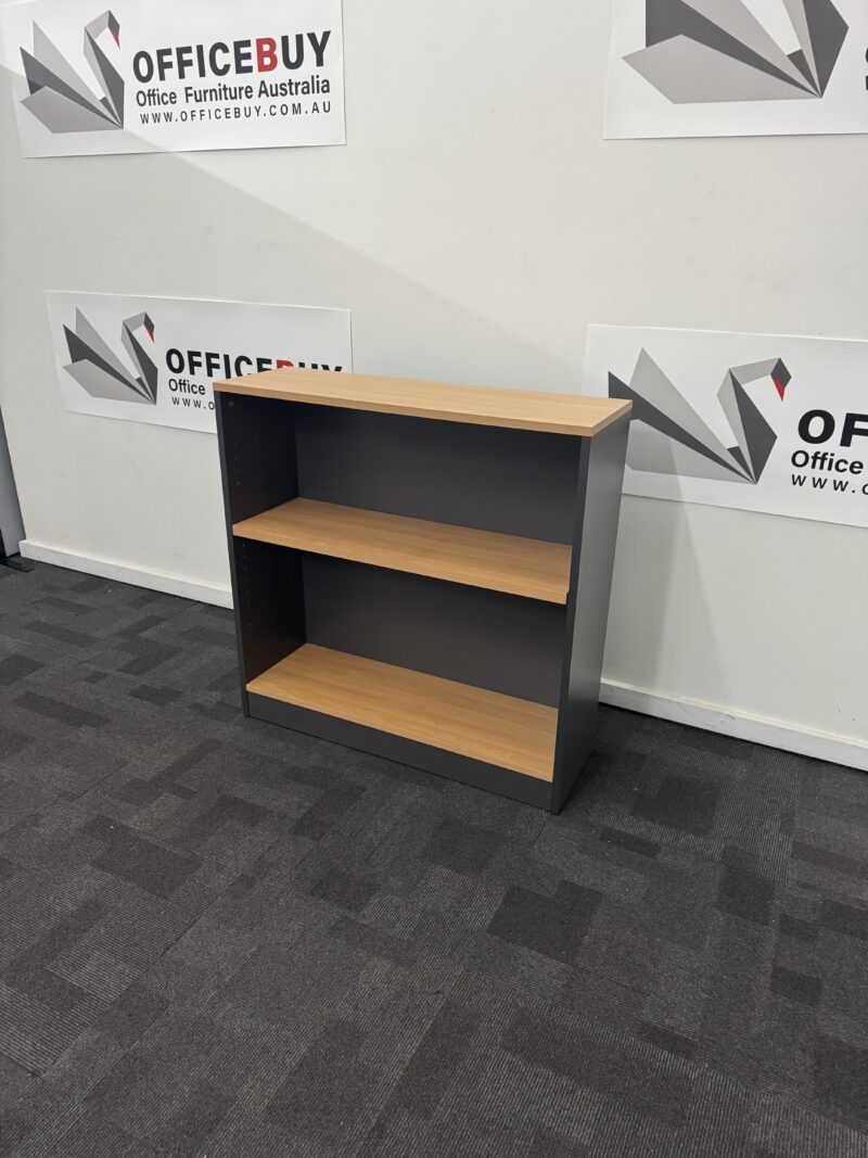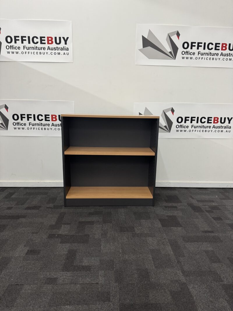 Second Hand Semi High Bookcase with Solid Back-Beech and dark grey-900mm x 900mm