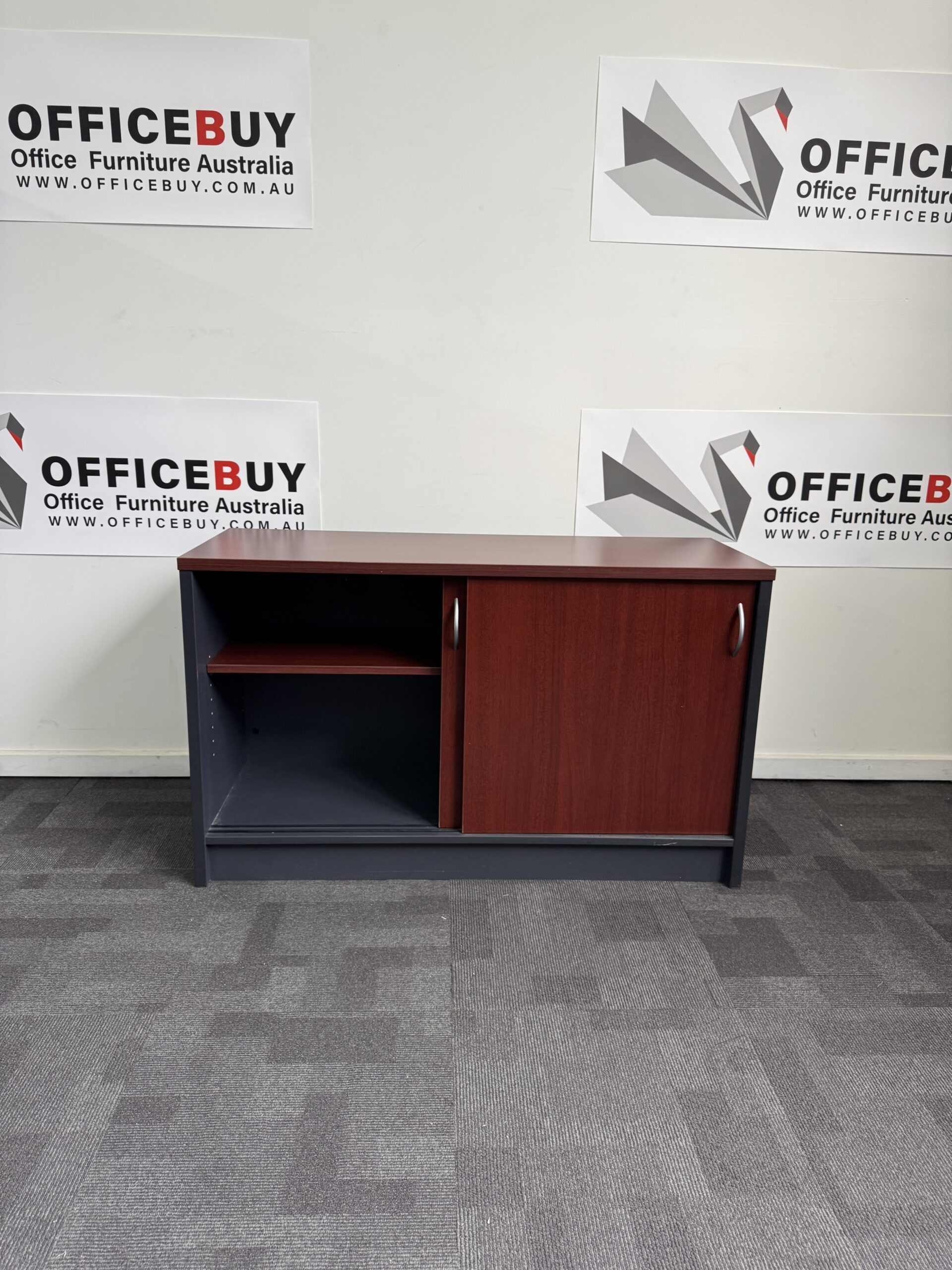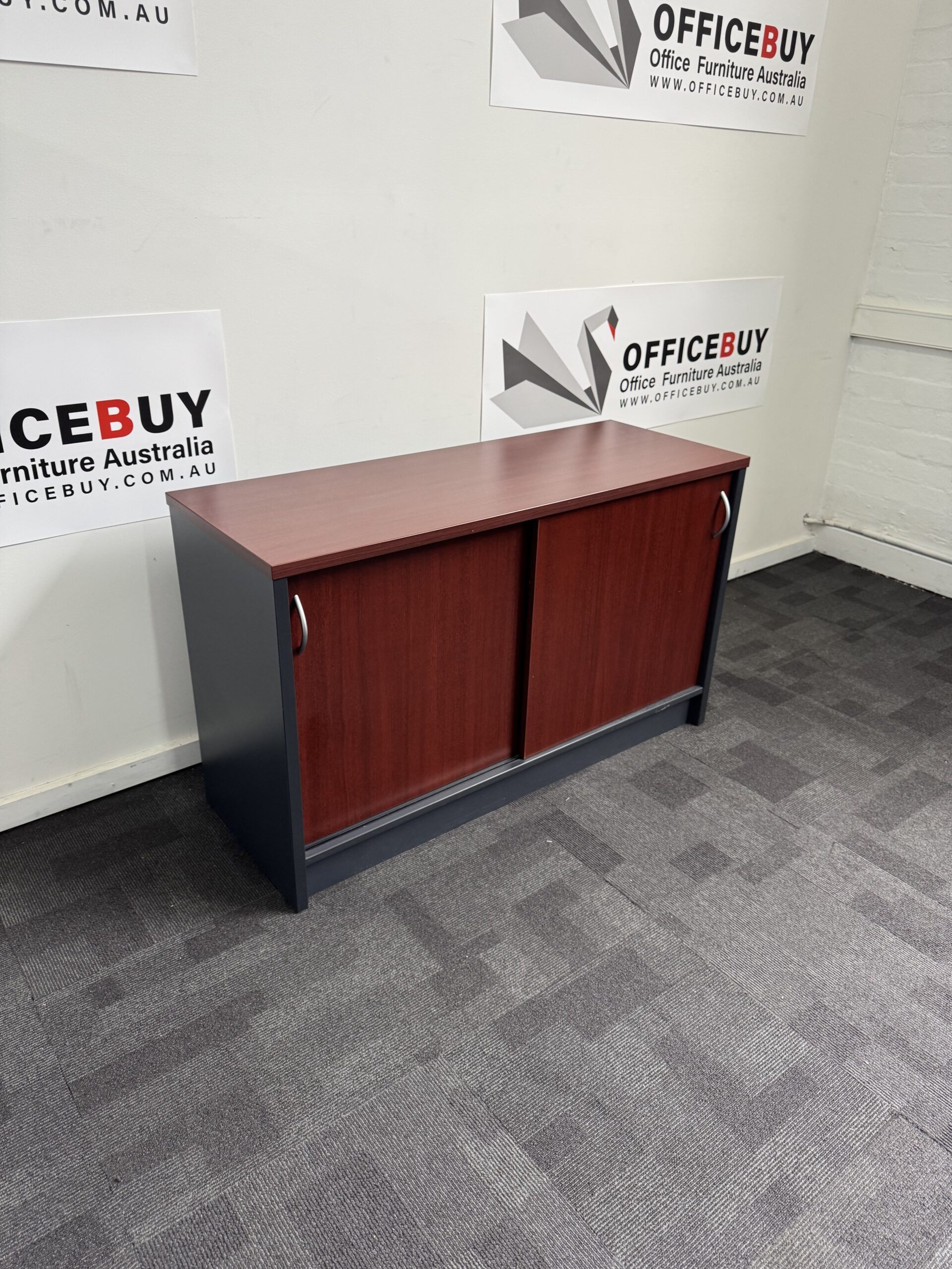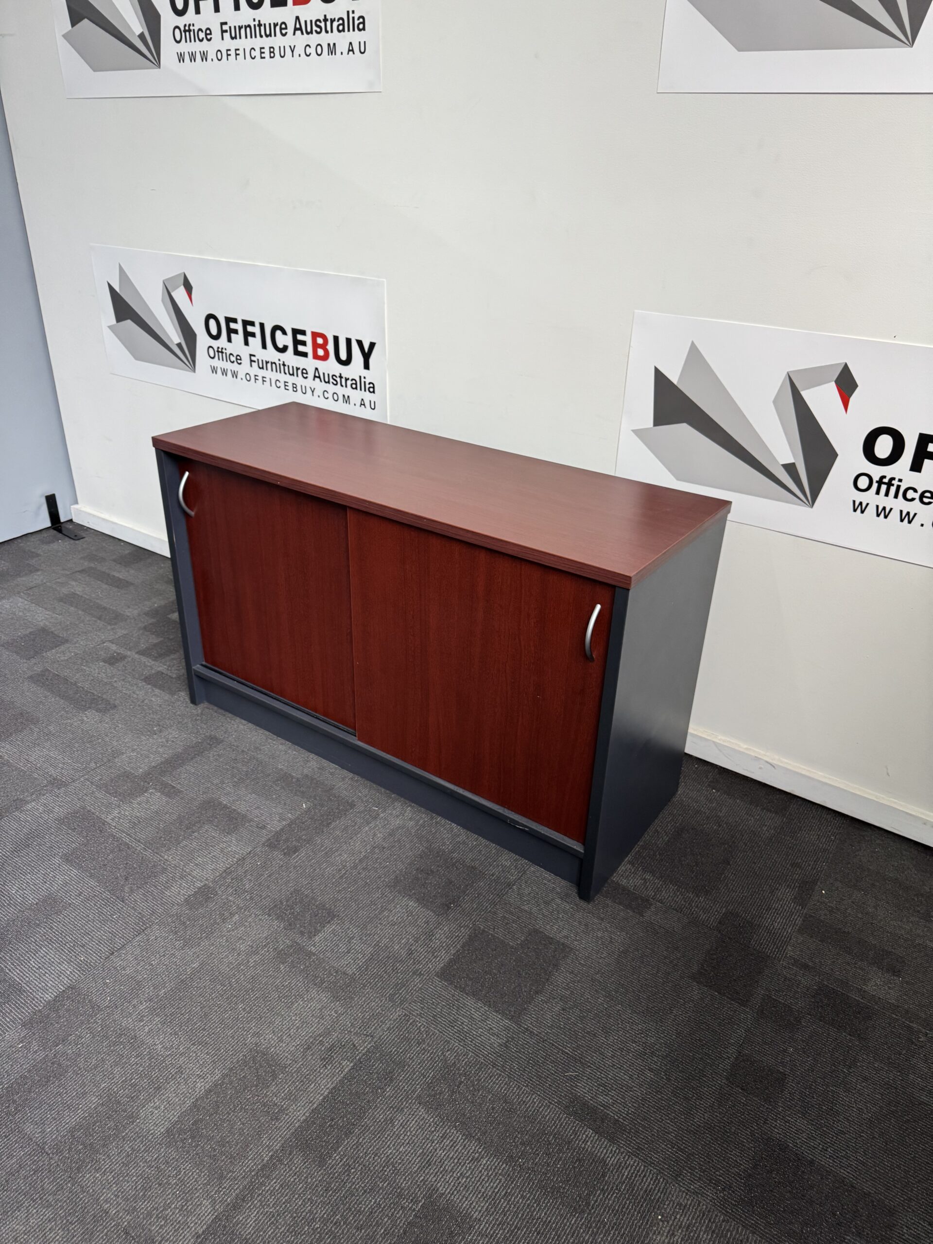 Second Hand Sliding Door Credenza-Jarrah and Dark Grey-1200mm wide