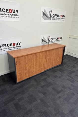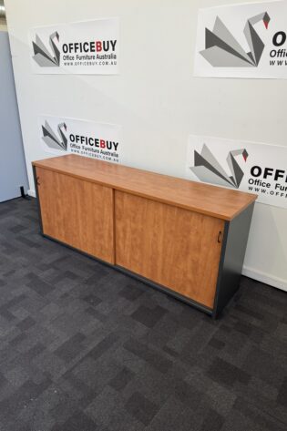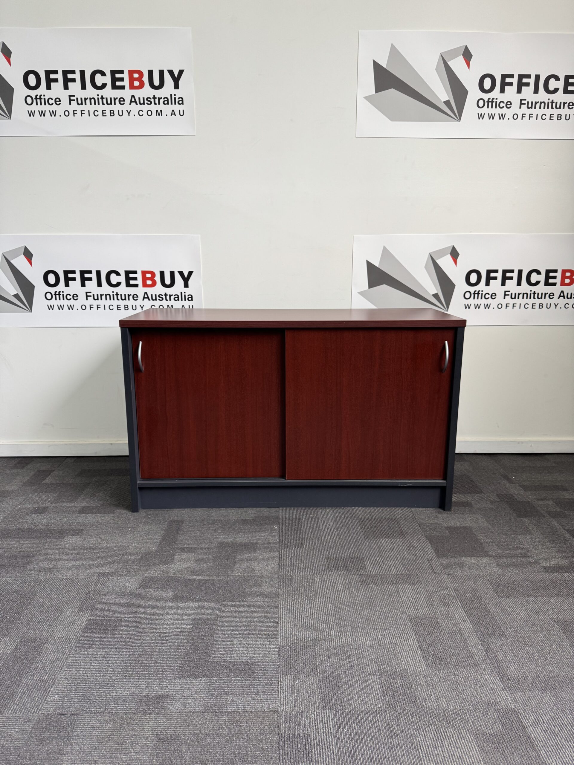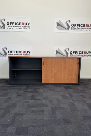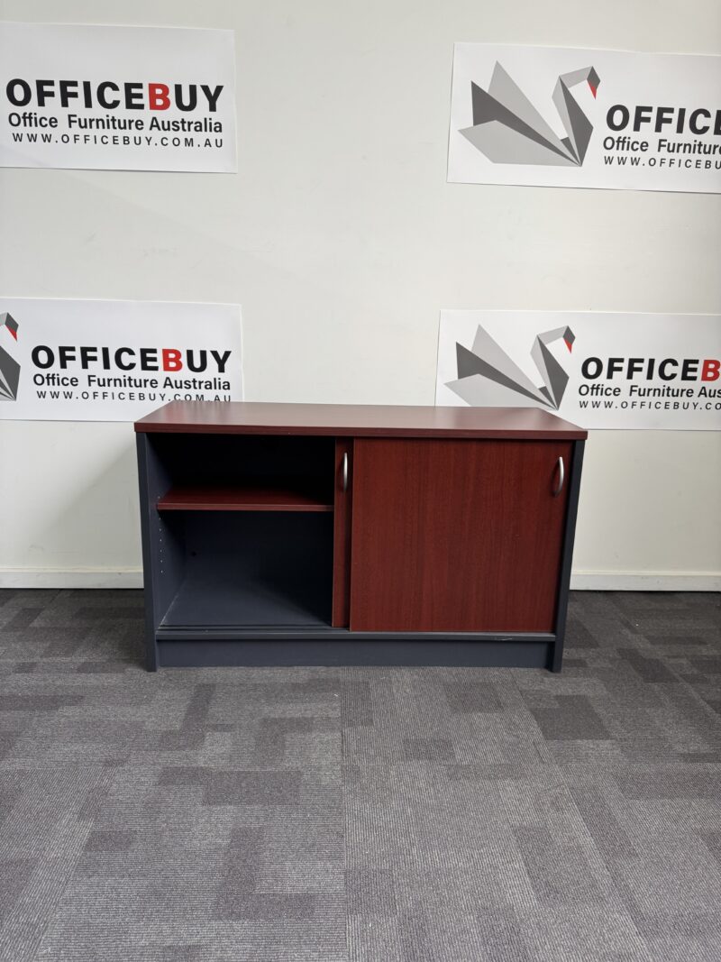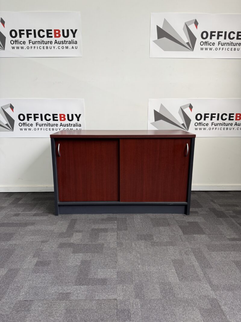 Second Hand Sliding Door Credenza-Jarrah and Dark Grey-1200mm wide
