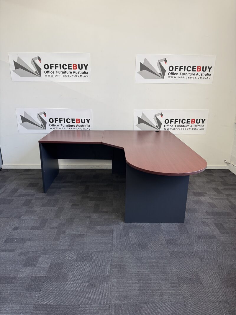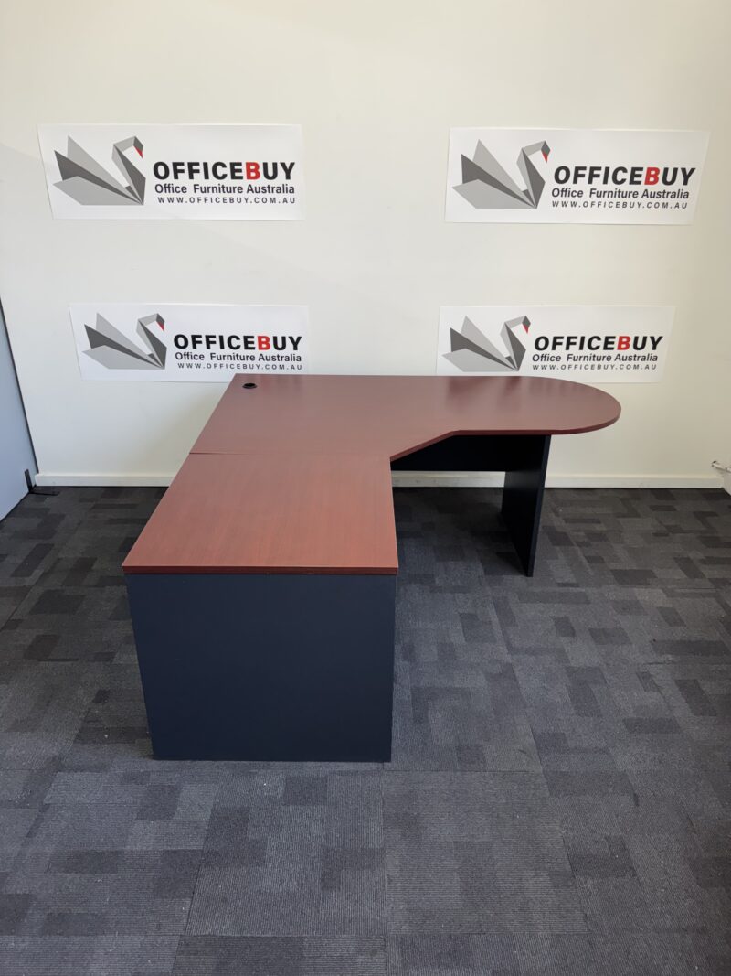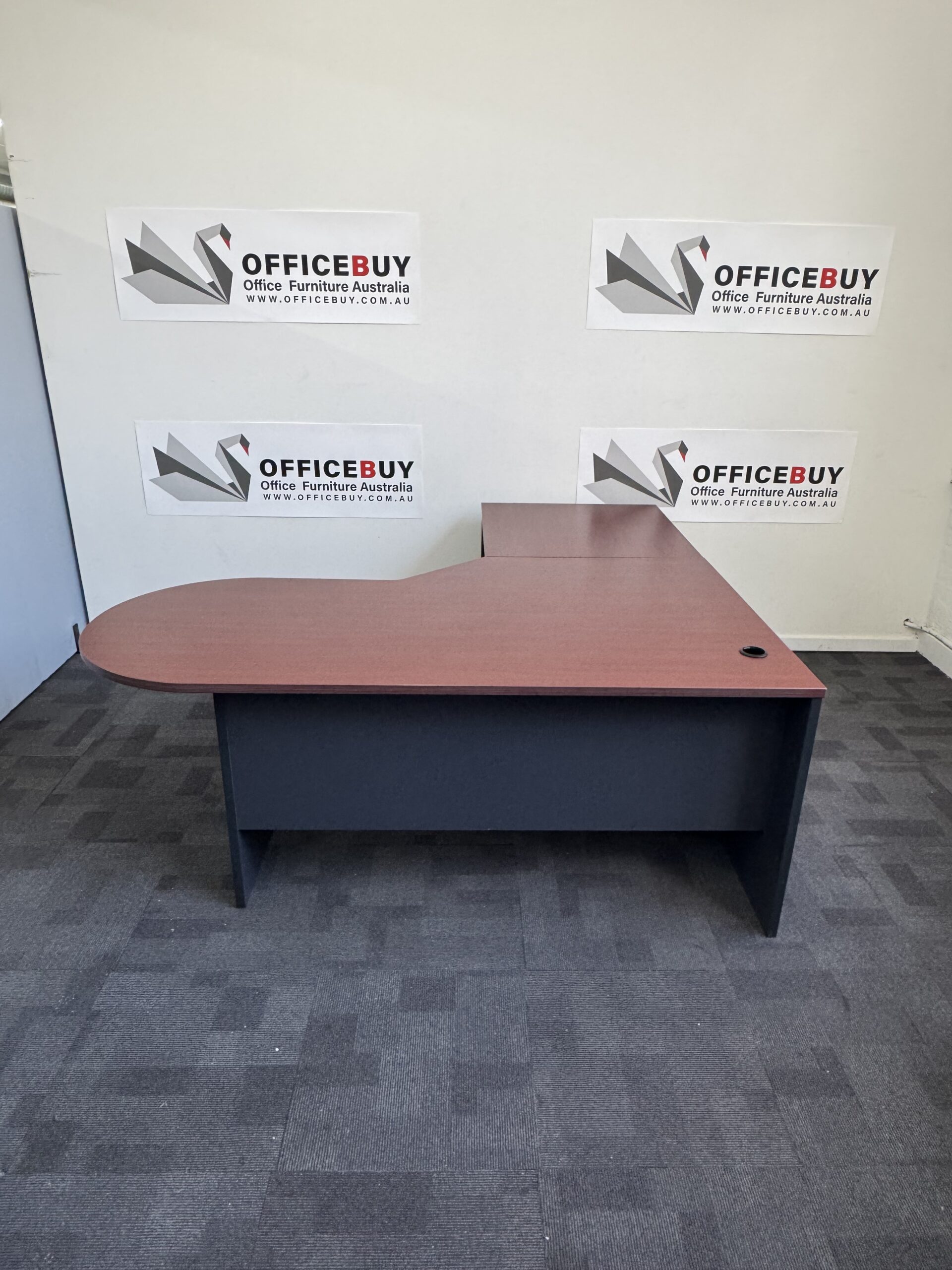 Second Hand Corner Workstation with Bulb End-Jarrah and Dark Grey-1800mm x 1800mm