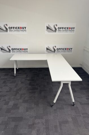 Maximize your workspace with this used L-Shape Desk in a sleek ironstone finish. Crafted from timber and made in Melbourne, this desk is perfect for both functionality and style, ideal for creating an efficient work environment.