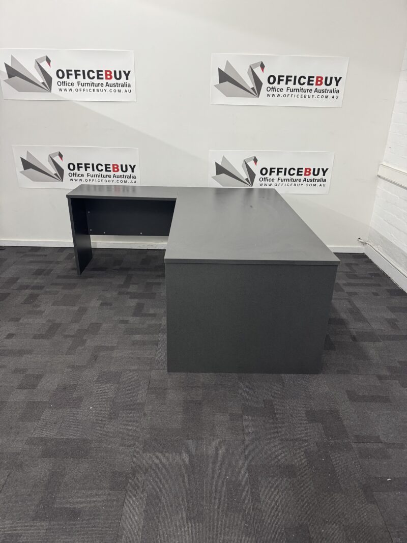 💼 Second Hand L-Shape Desk with Reversible Return – Ironstone (1800mm x 1800mm)