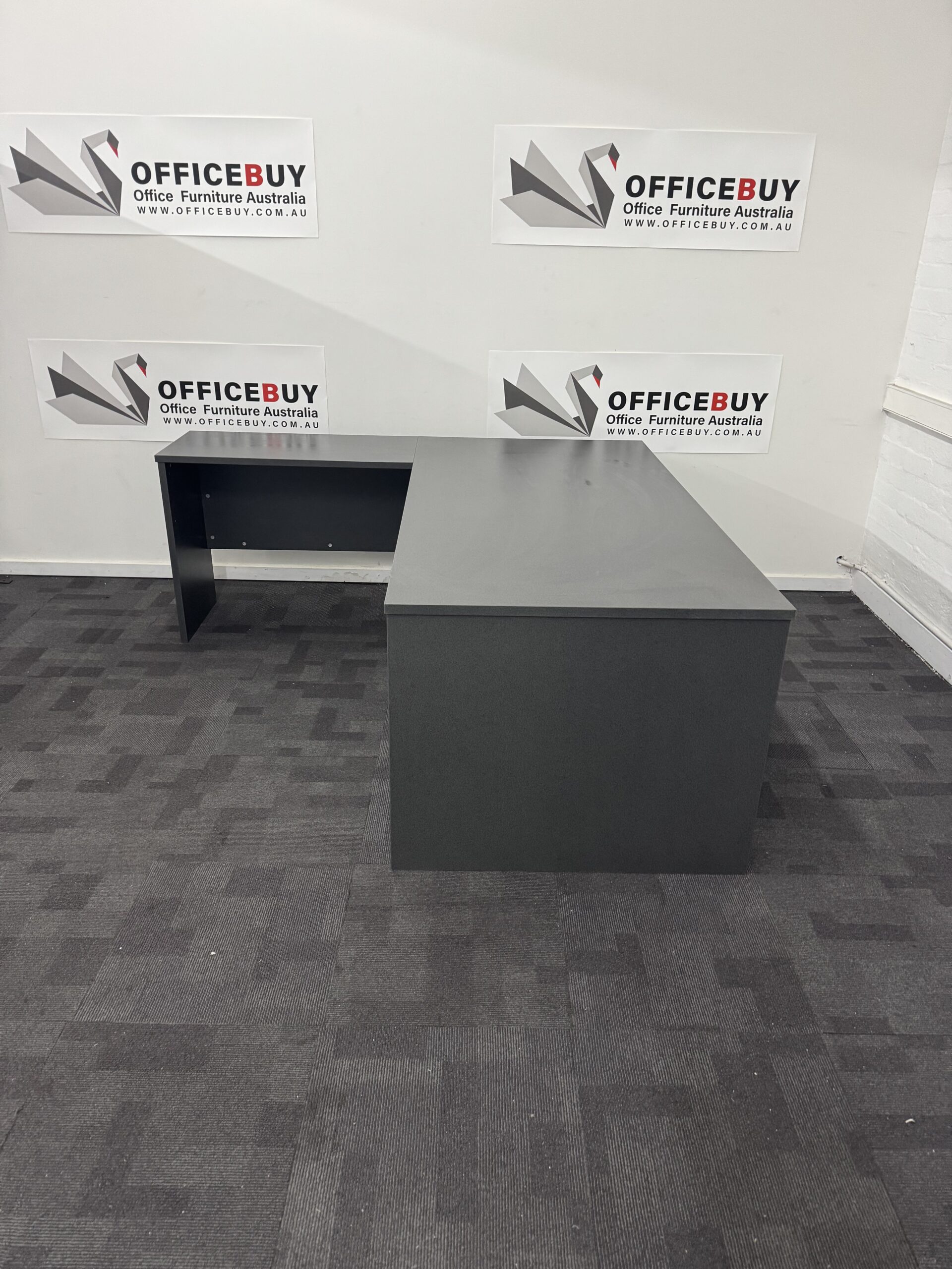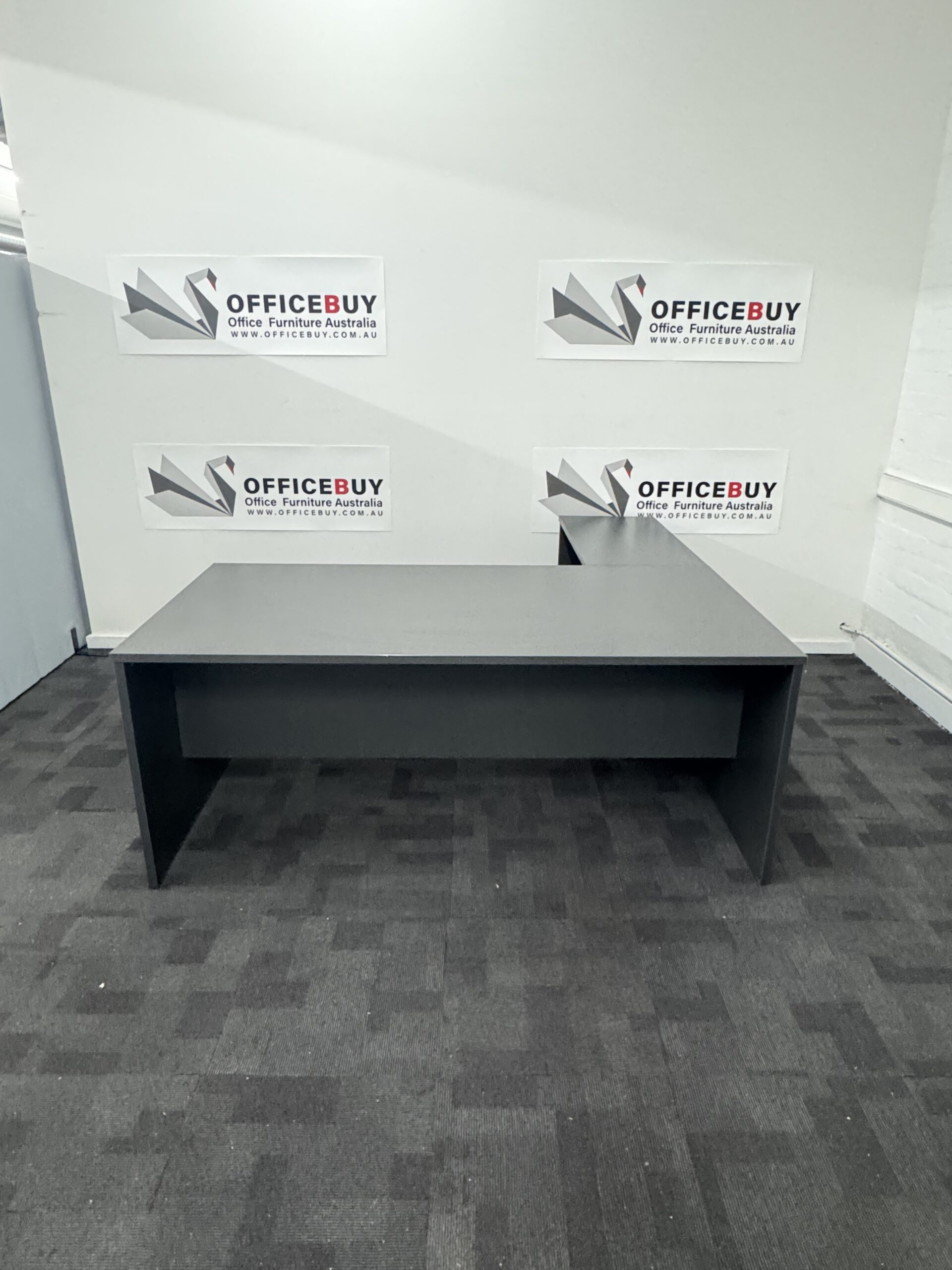 Second Hand L-Shape Desk with Reversible Return-Ironstone-1800mm x 1800mm