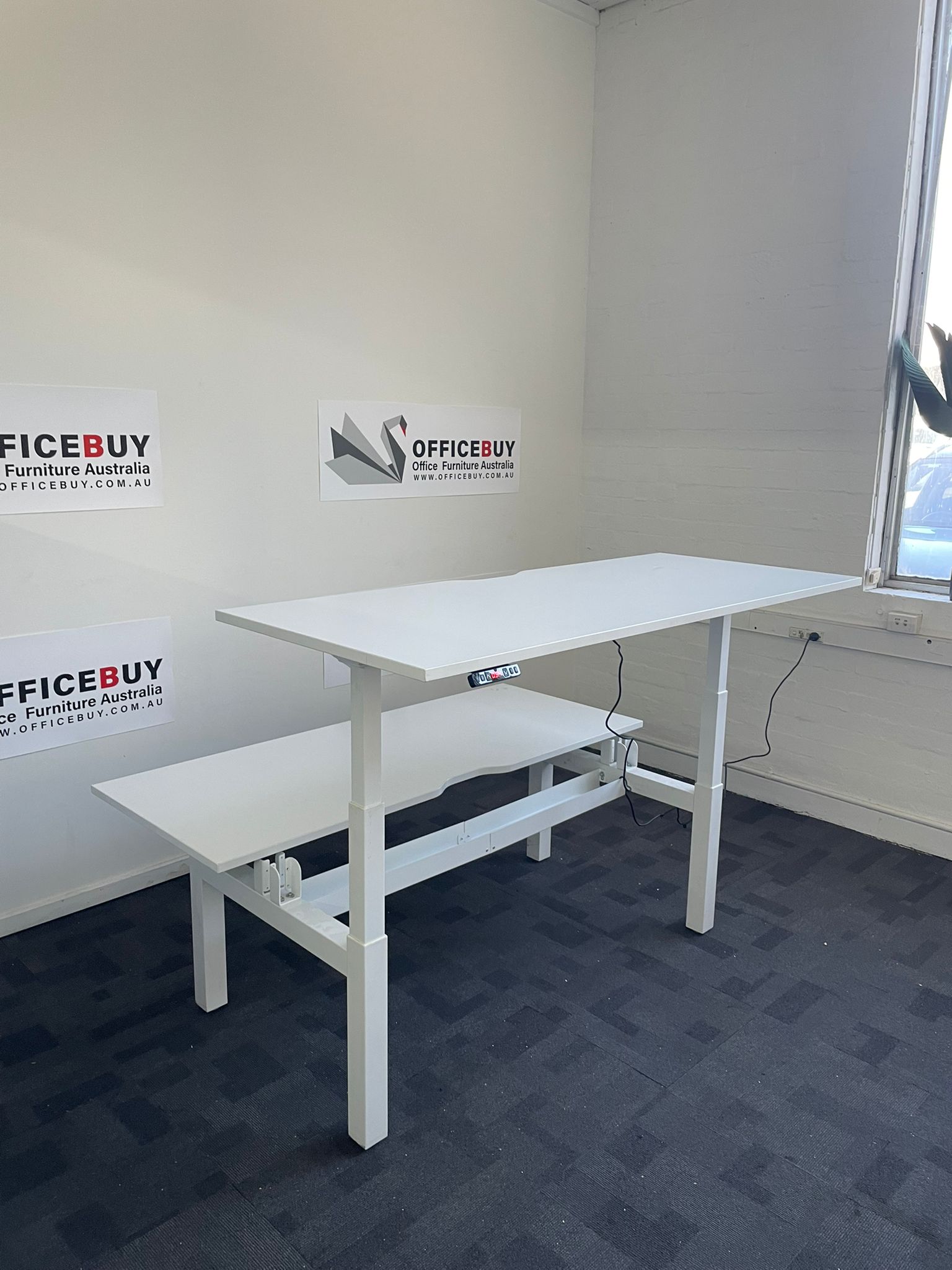 Second Hand 2-Person Multi-Person Electric Height Adjustable Desks With Light Grey Partition-1800mm