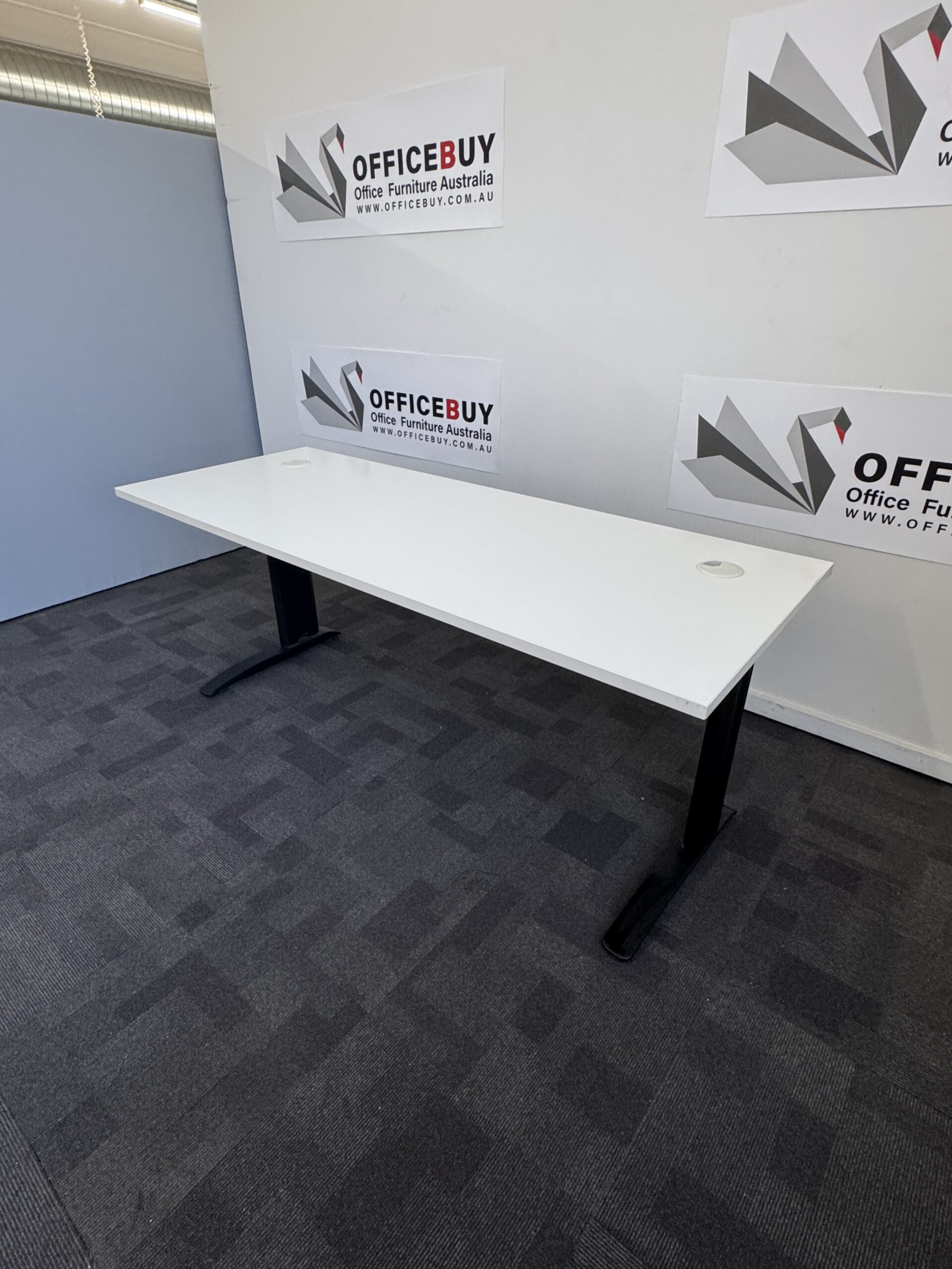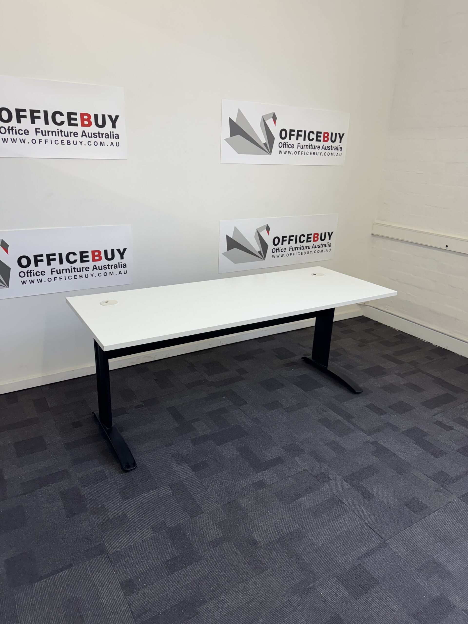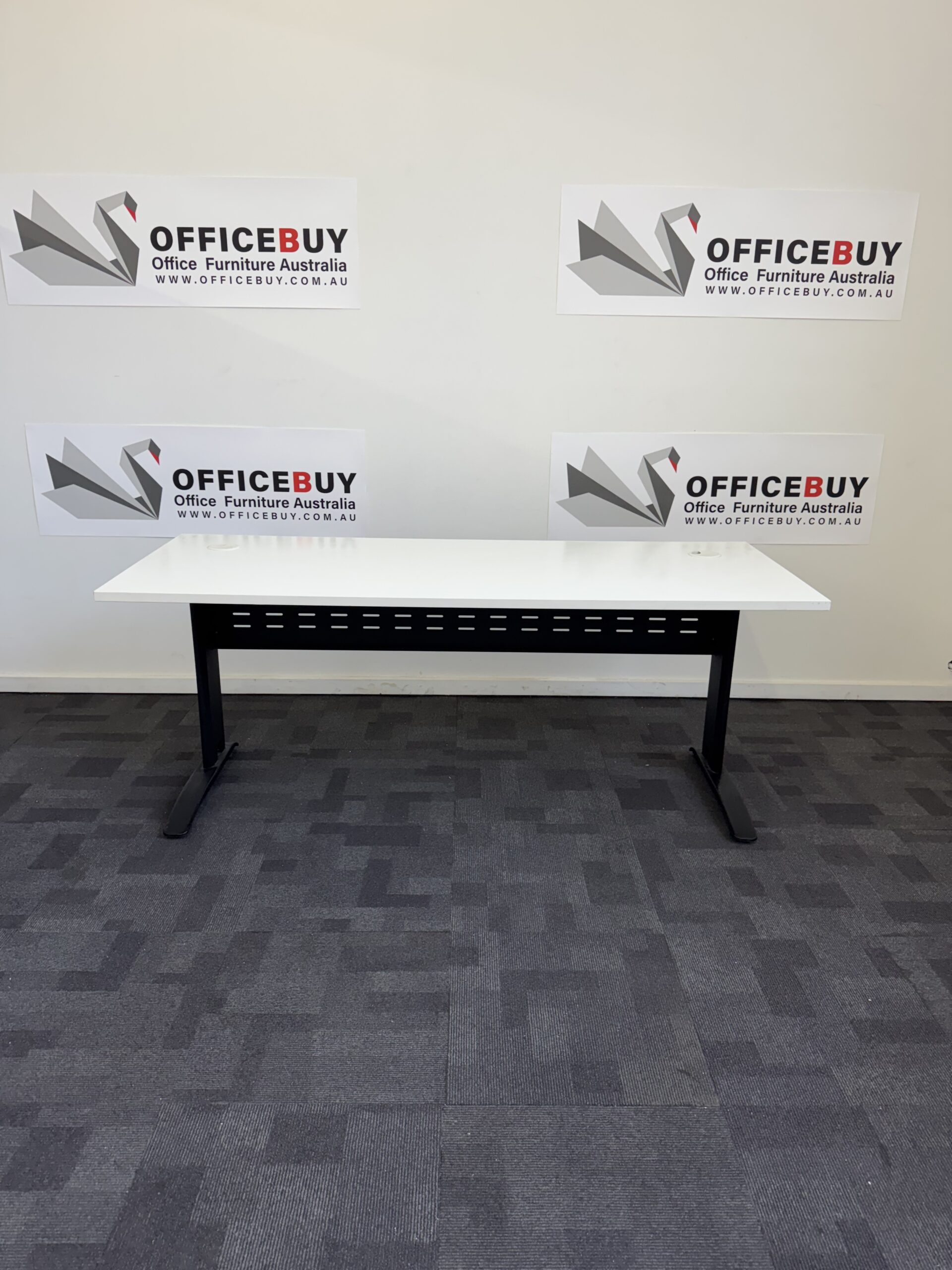 Second Hand Straight Desk-White Top with Black Steel Legs-1800mm x 700mm