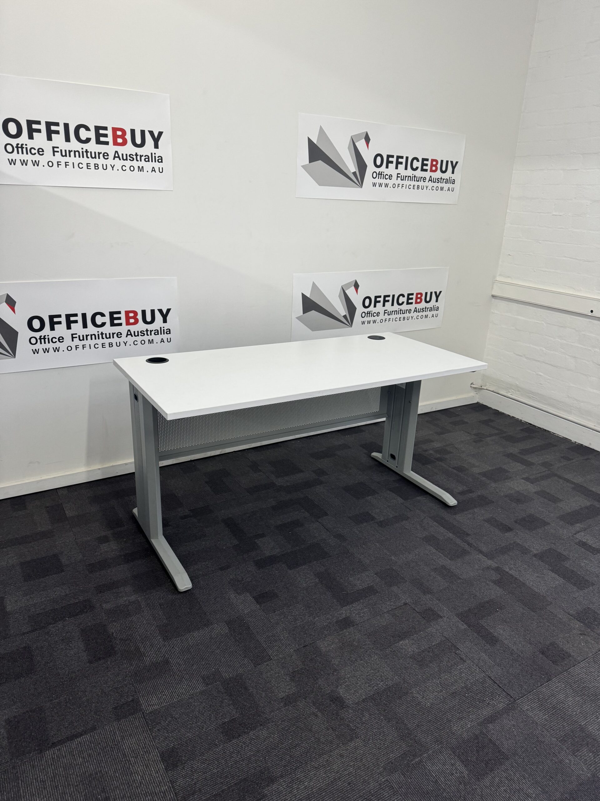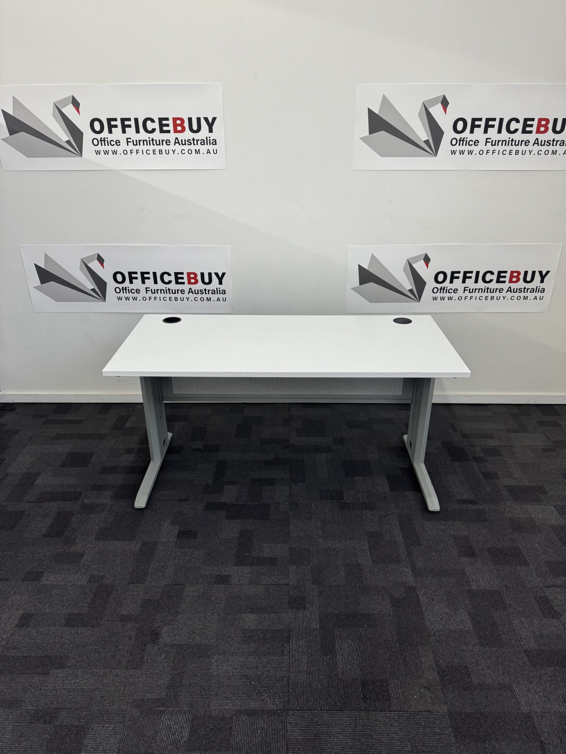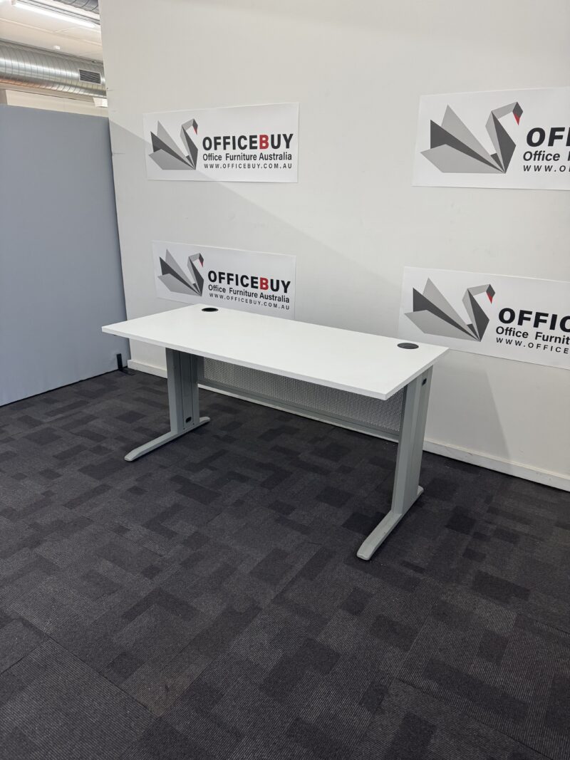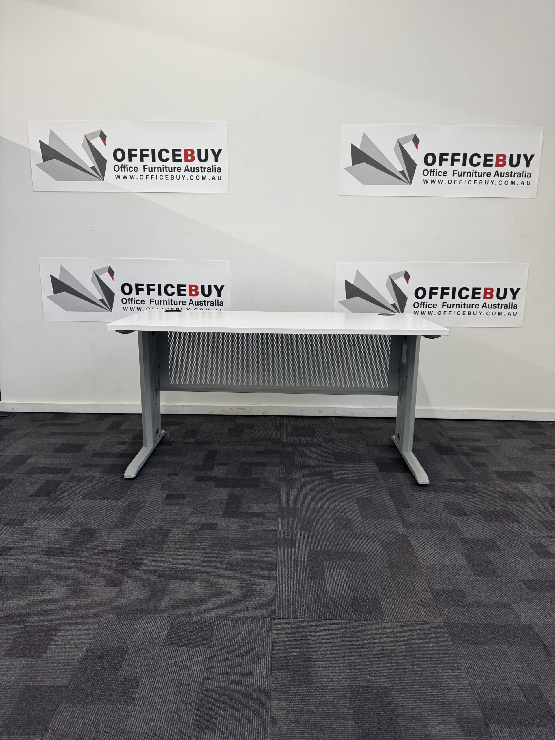Second Hand Straight Desk-White Top with Metal Modesty Panel-1500mm x 700mm