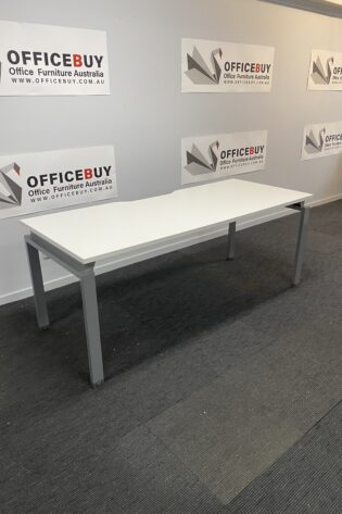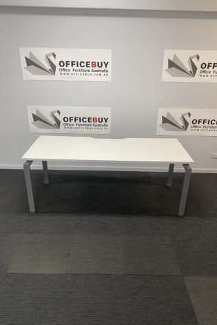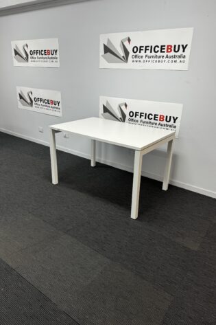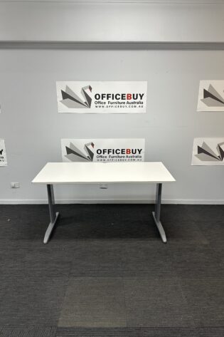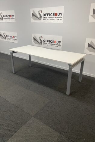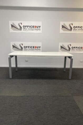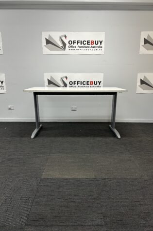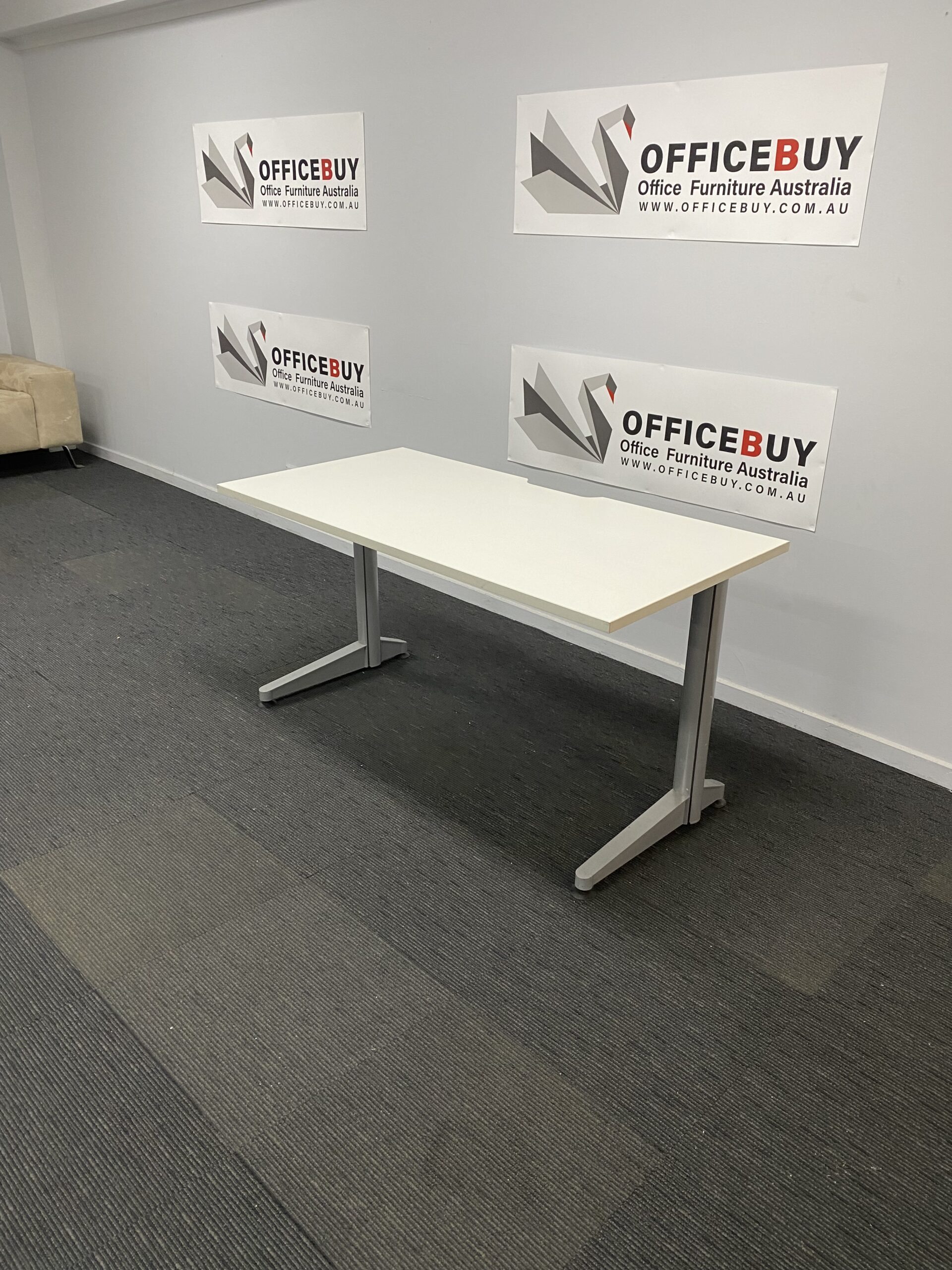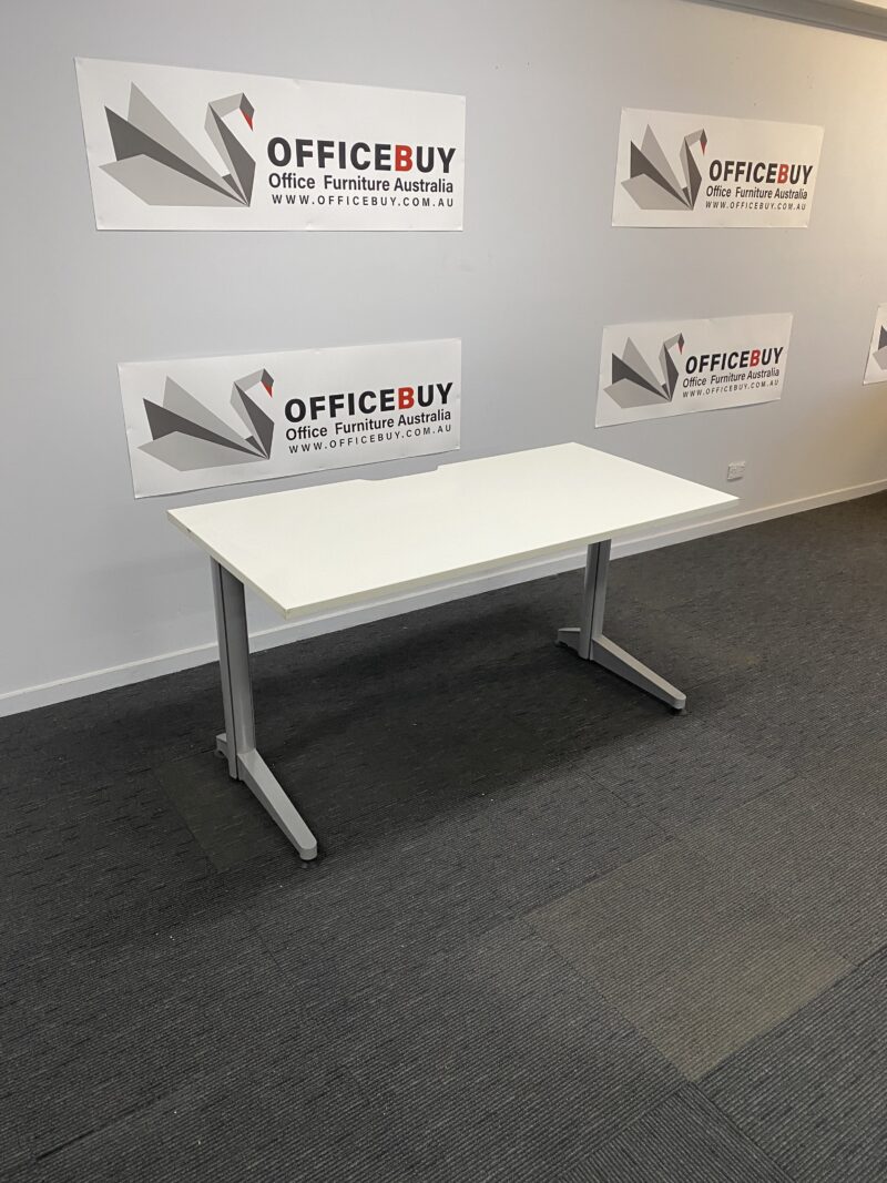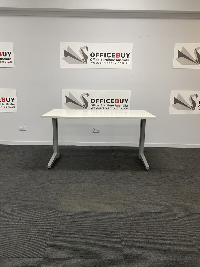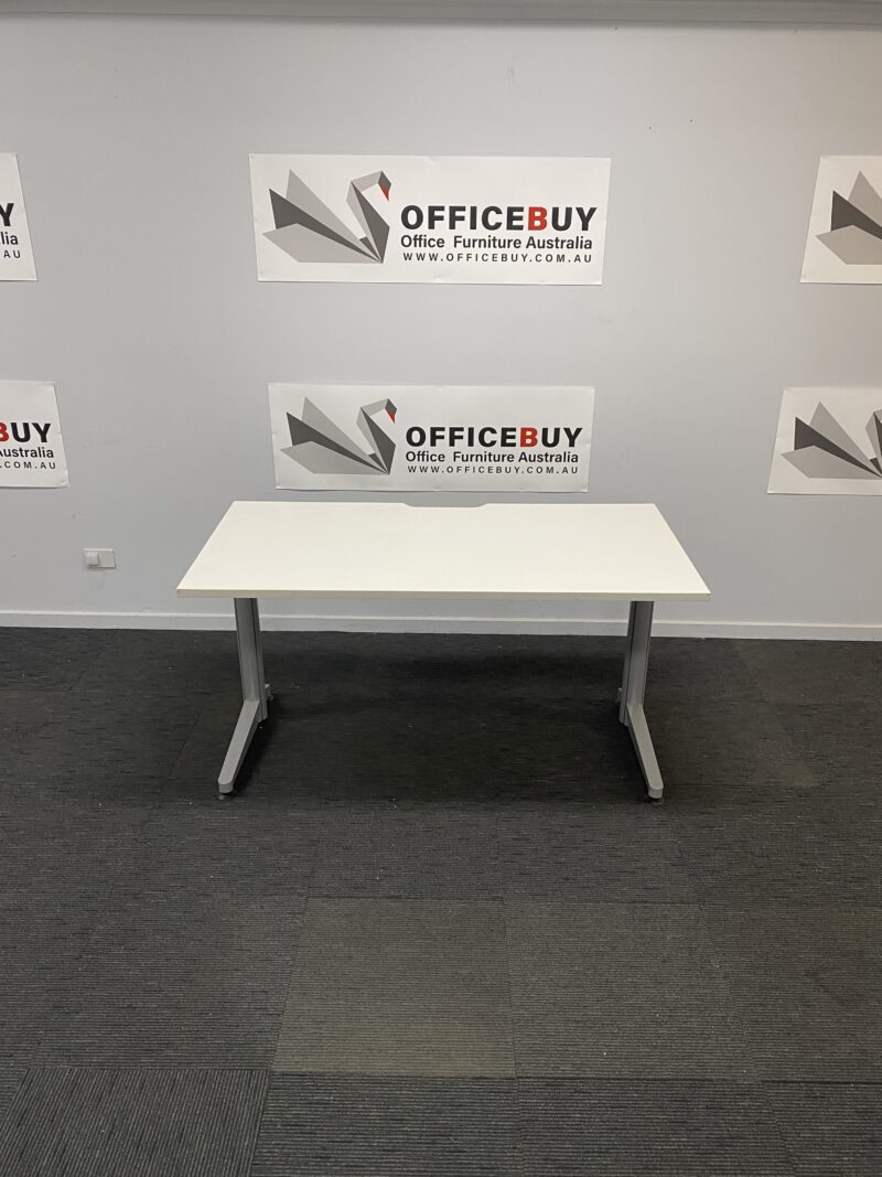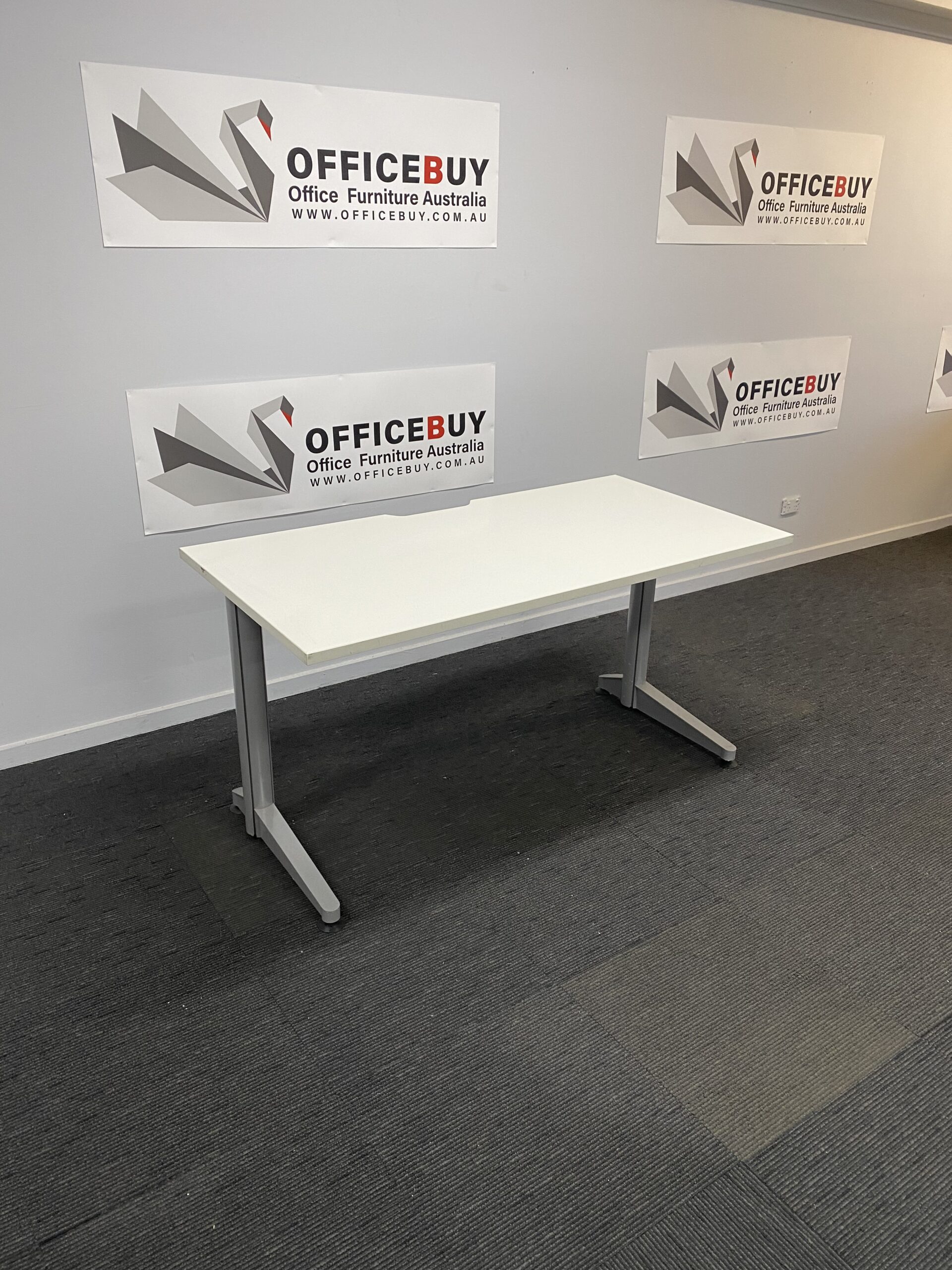 Second Hand Straight Desk with Metal Legs-White and Silver Grey-1400mm x 700mm