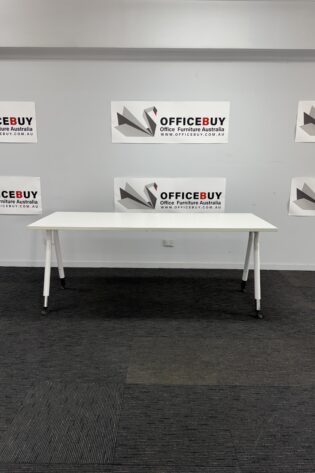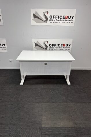 Straight Desk with Steel Legs – White (Second Hand, Good Condition)