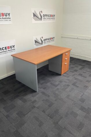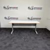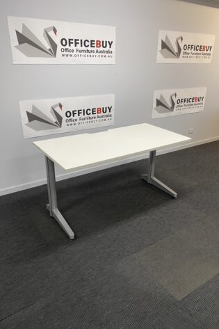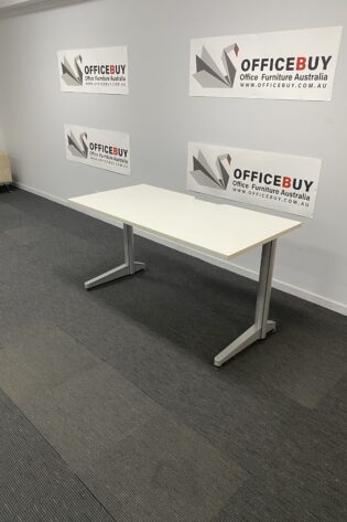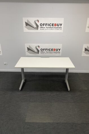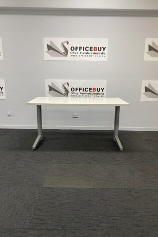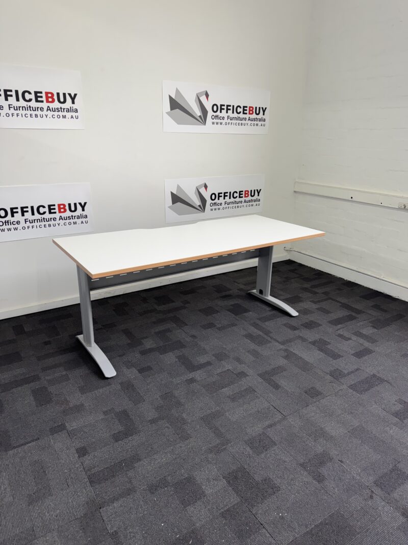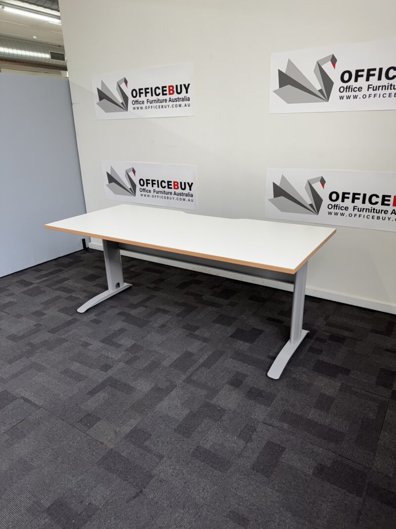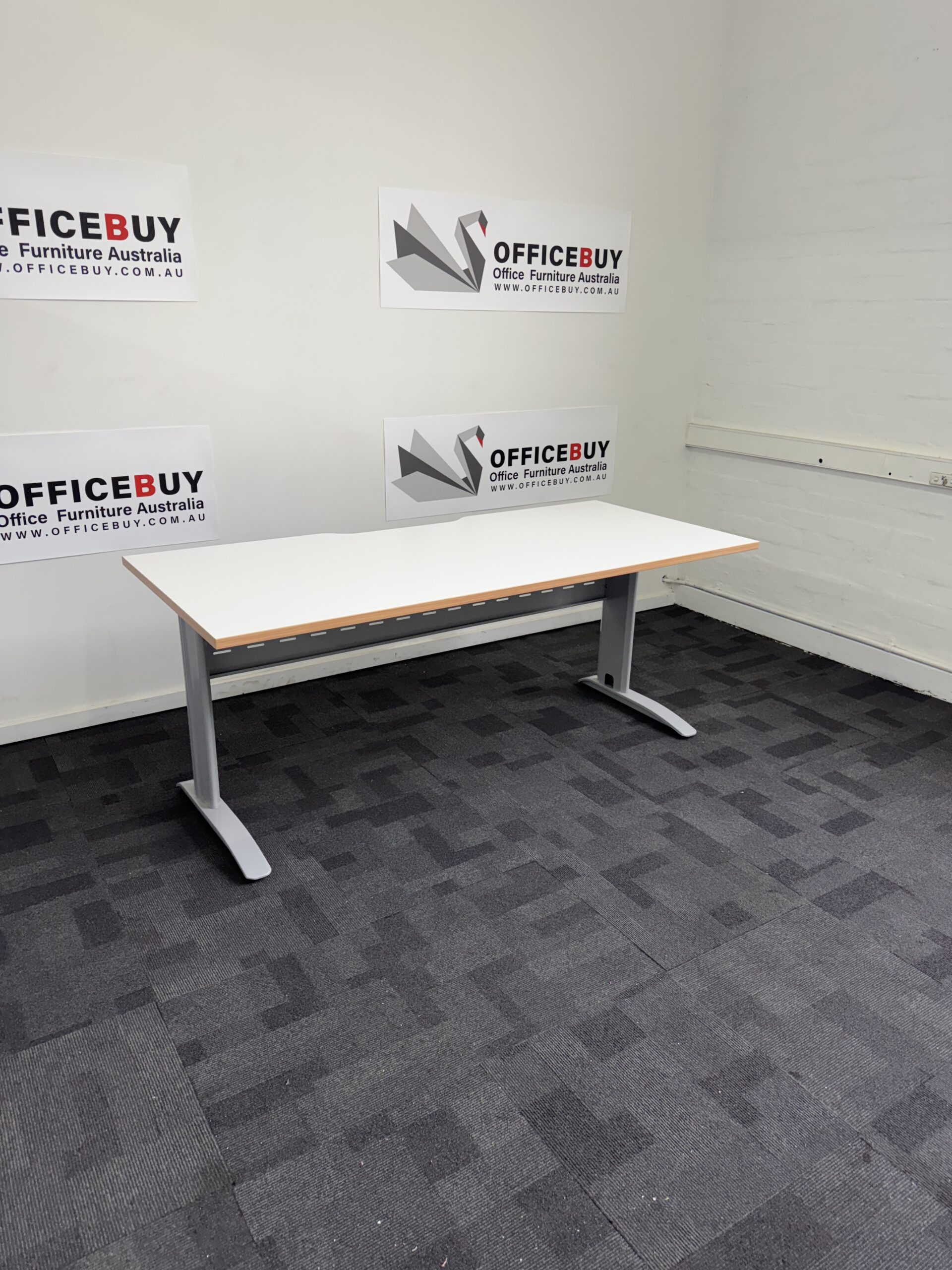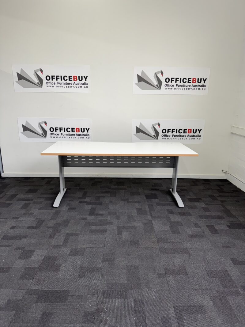 Second Hand Straight White Desk-Silver Grey Steel legs with Steel Modesty Panel-1800mm x 800mm