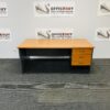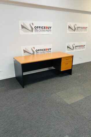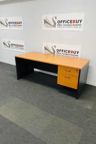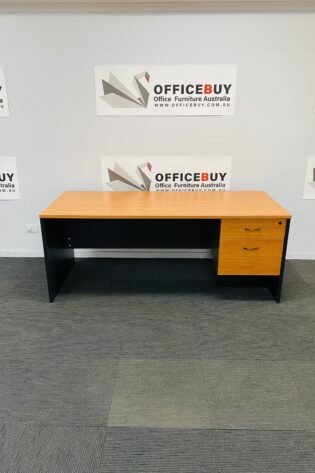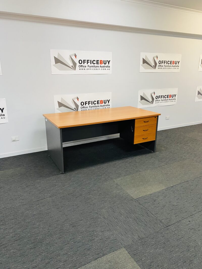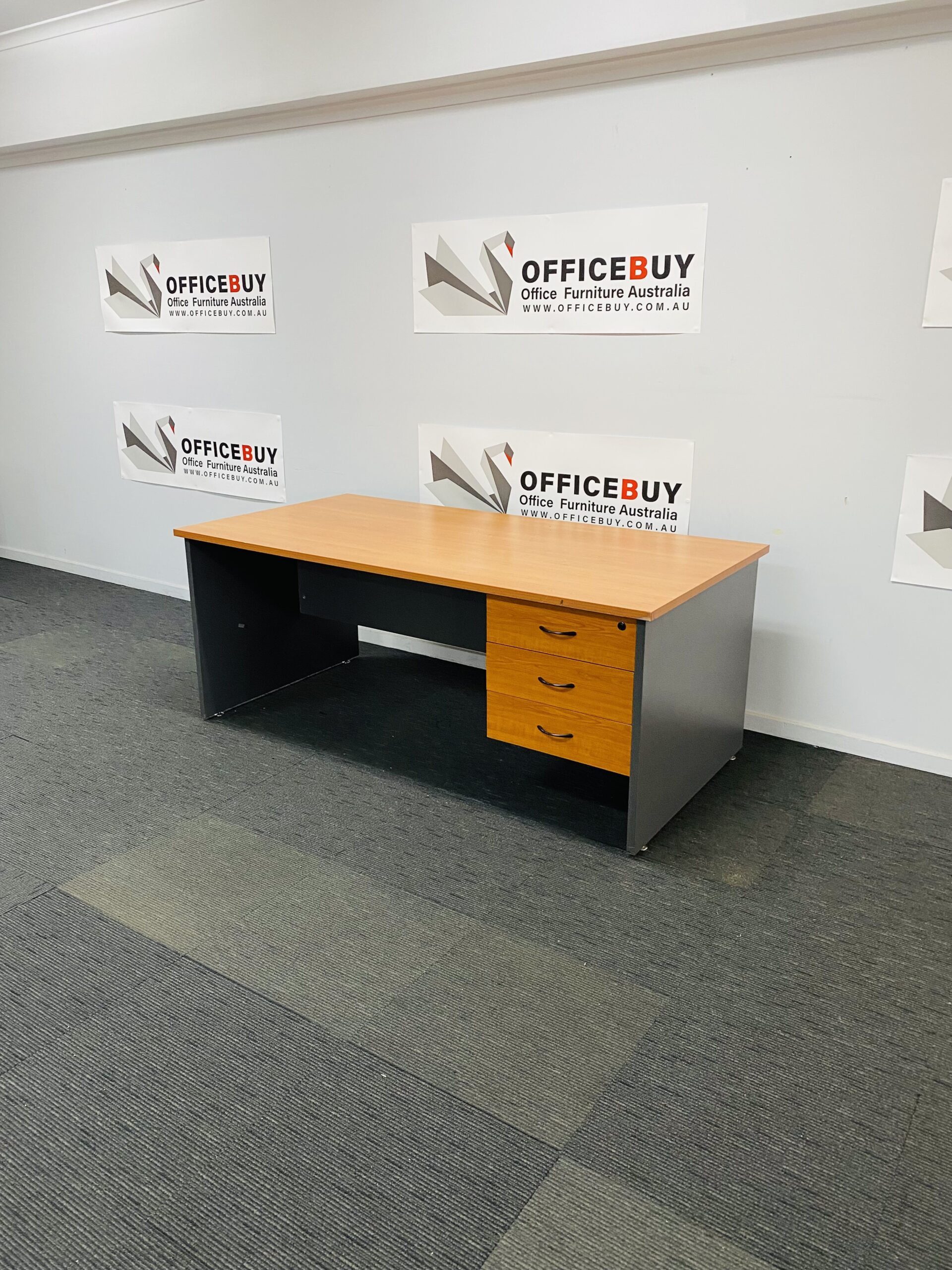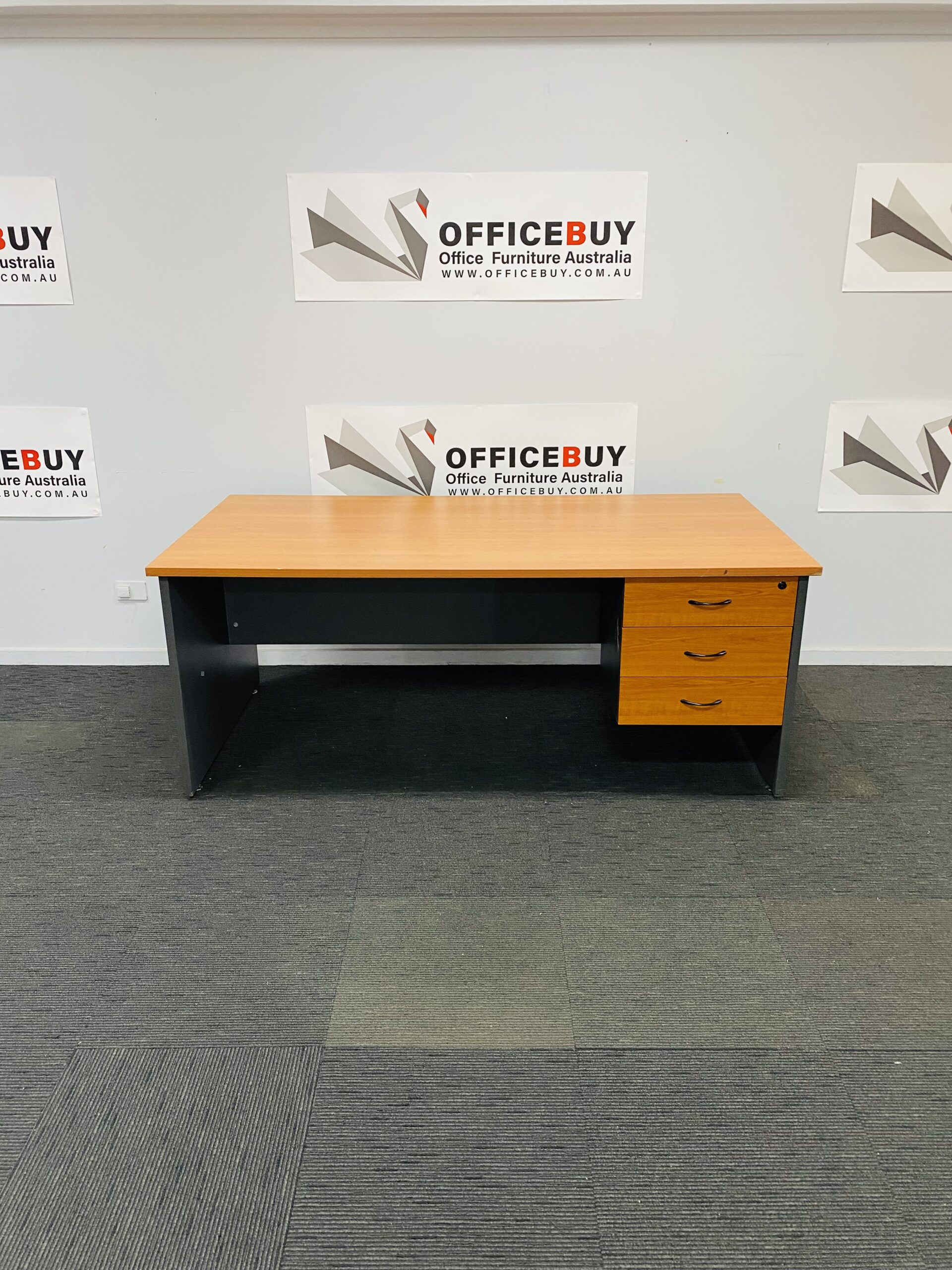 Straight Desk with Fixed Drawer Unit-Cherry and dark grey-1800mm x 900mm