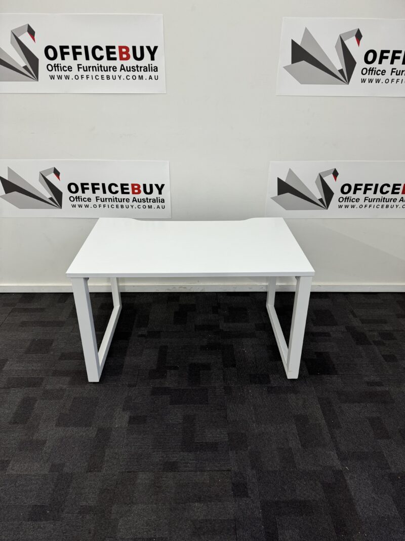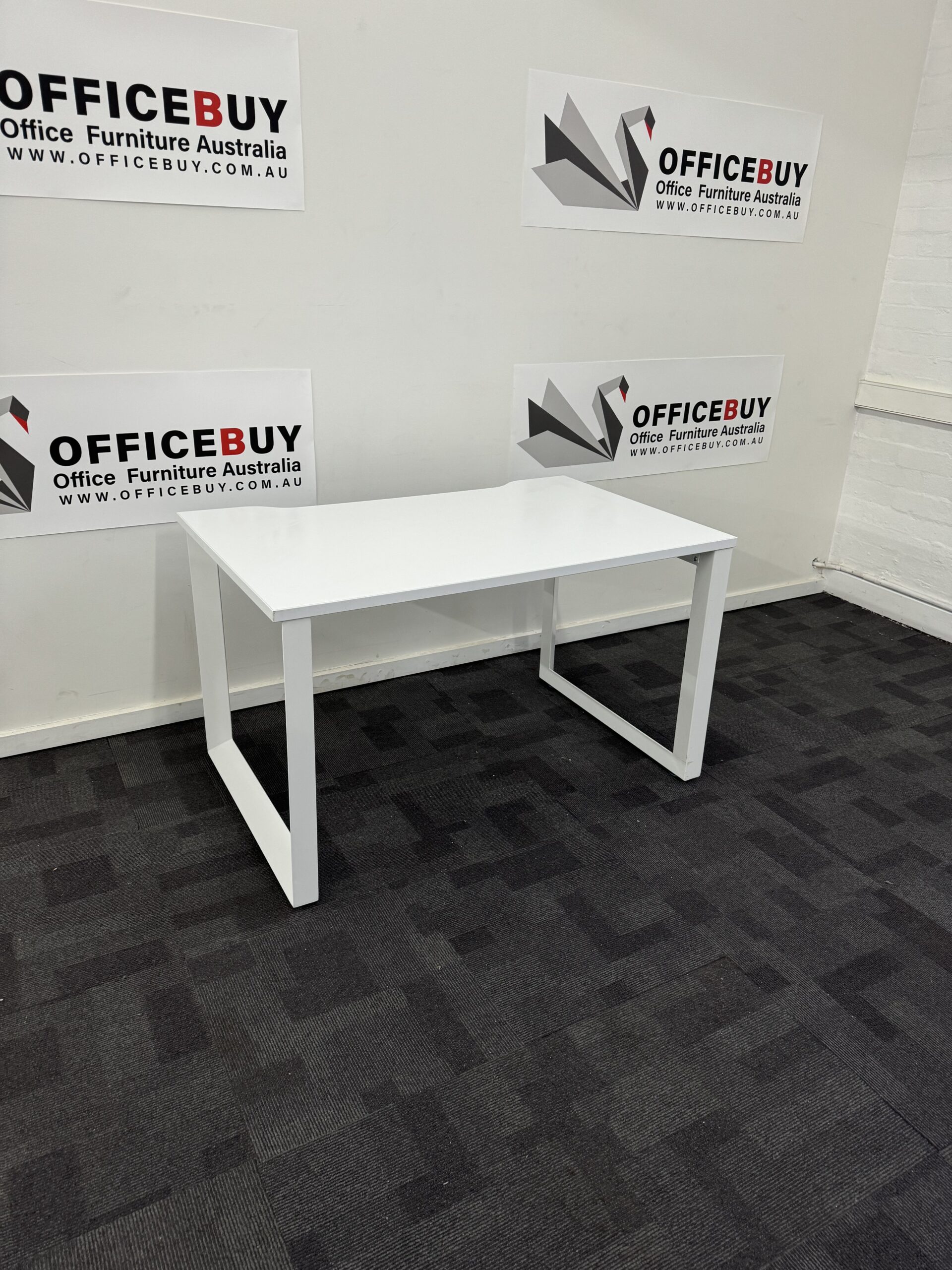 Straight Desk-White Top with White Square Legs-1200mm x 750mm