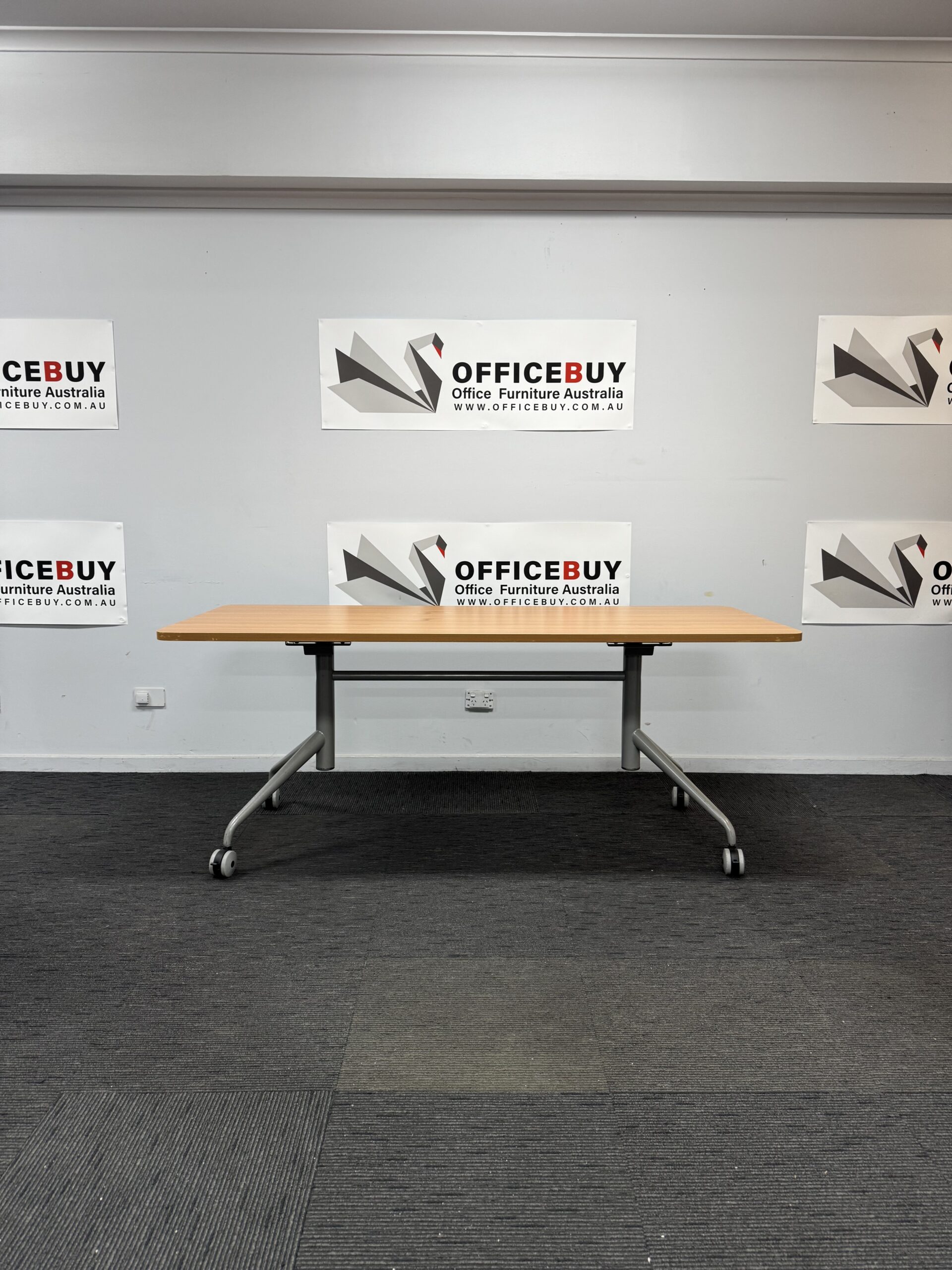 Mobile Flip Top Table-Beech Top with Silver Grey Legs-1800mm x 750mm