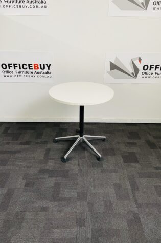 Elevate your space with this bold and functional round table! In second-hand but good condition, it features a high-quality ironstone timber top paired with a sturdy black steel base – perfect for meeting rooms, dining areas, or creative spaces.