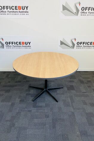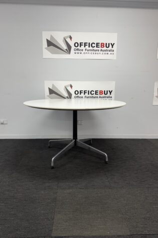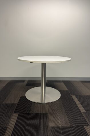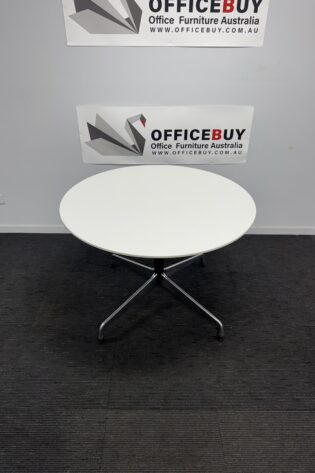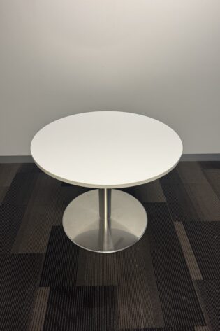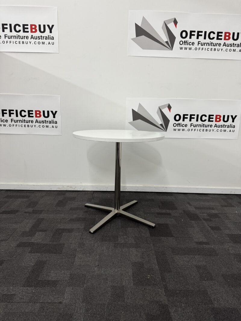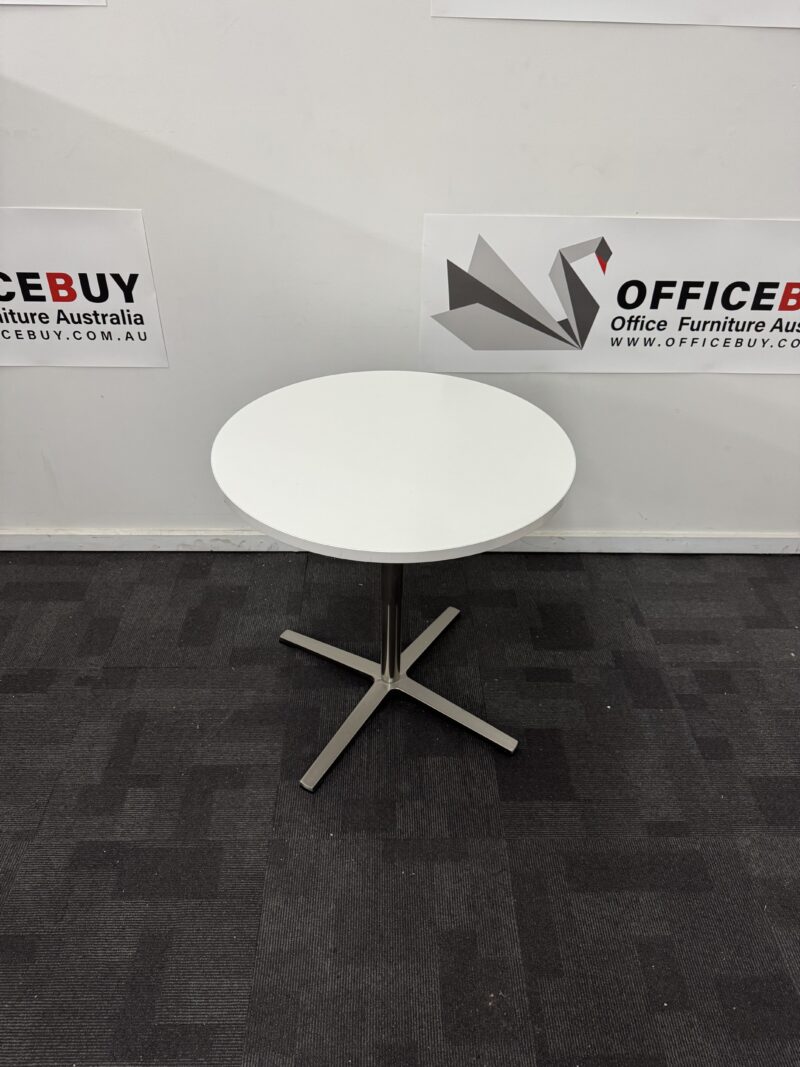 Second Hand Round Table-White Top with Chrome Four Star Base-740mm diameter