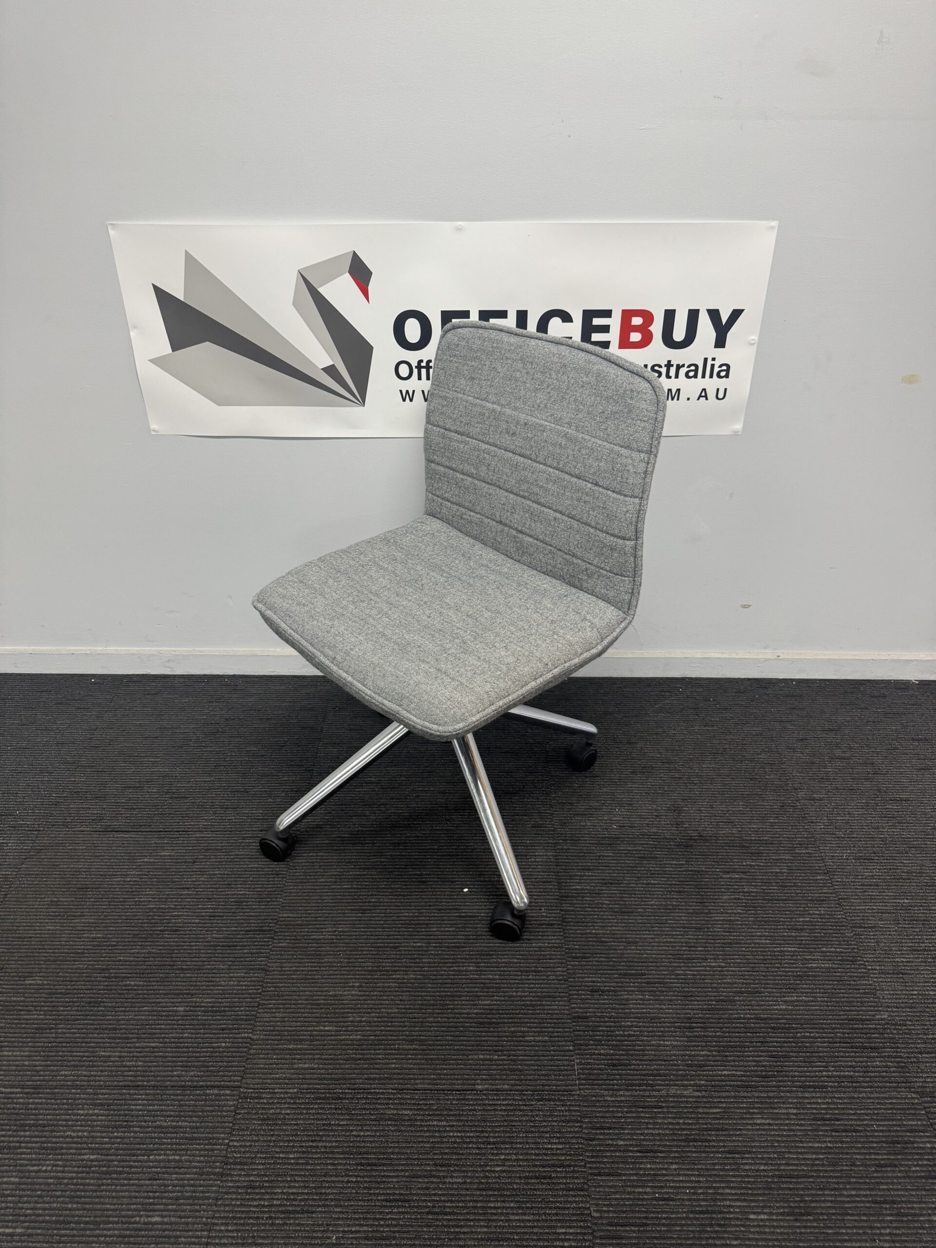 - Grey fabric upholstery for comfort and a professional look