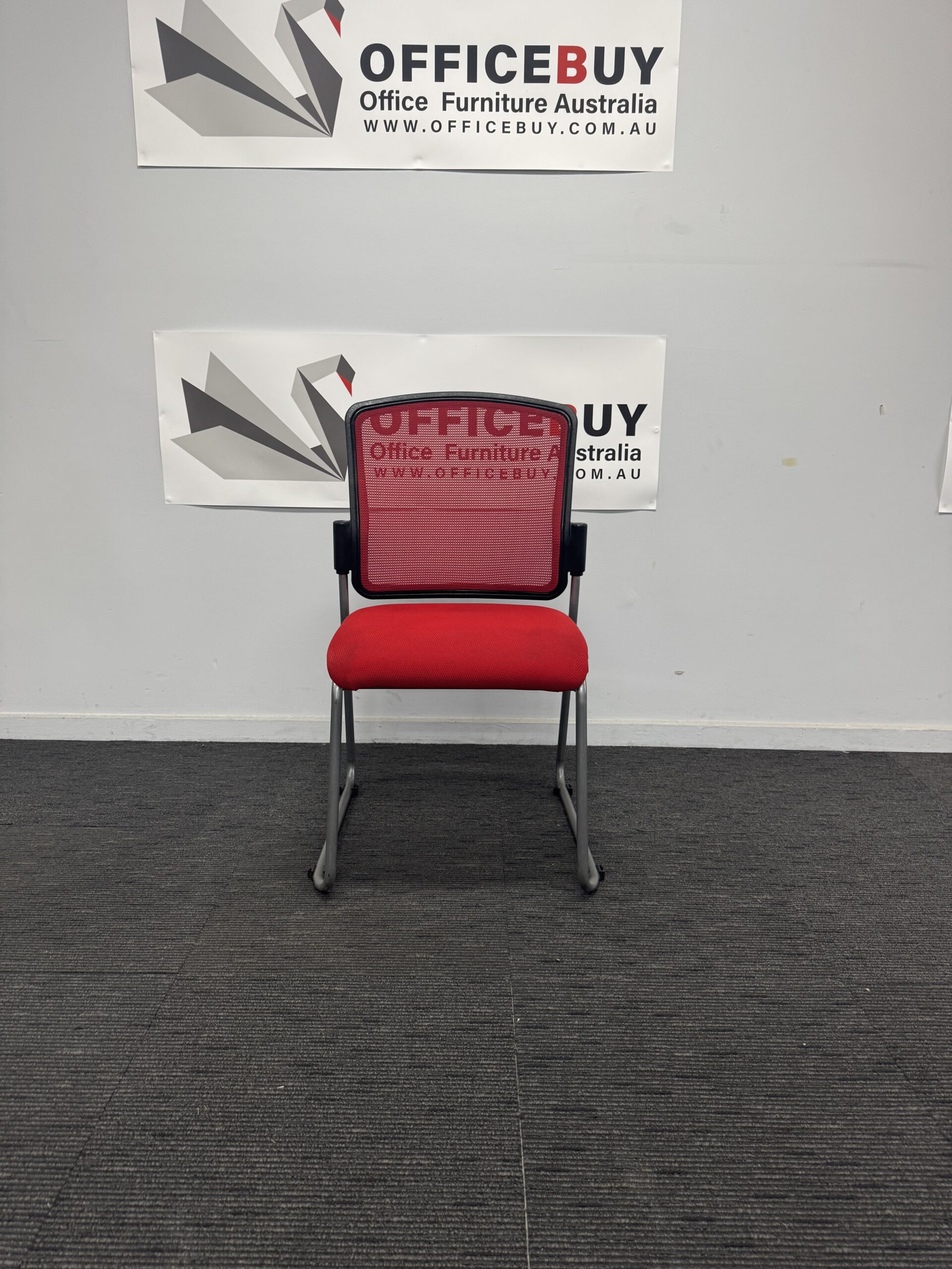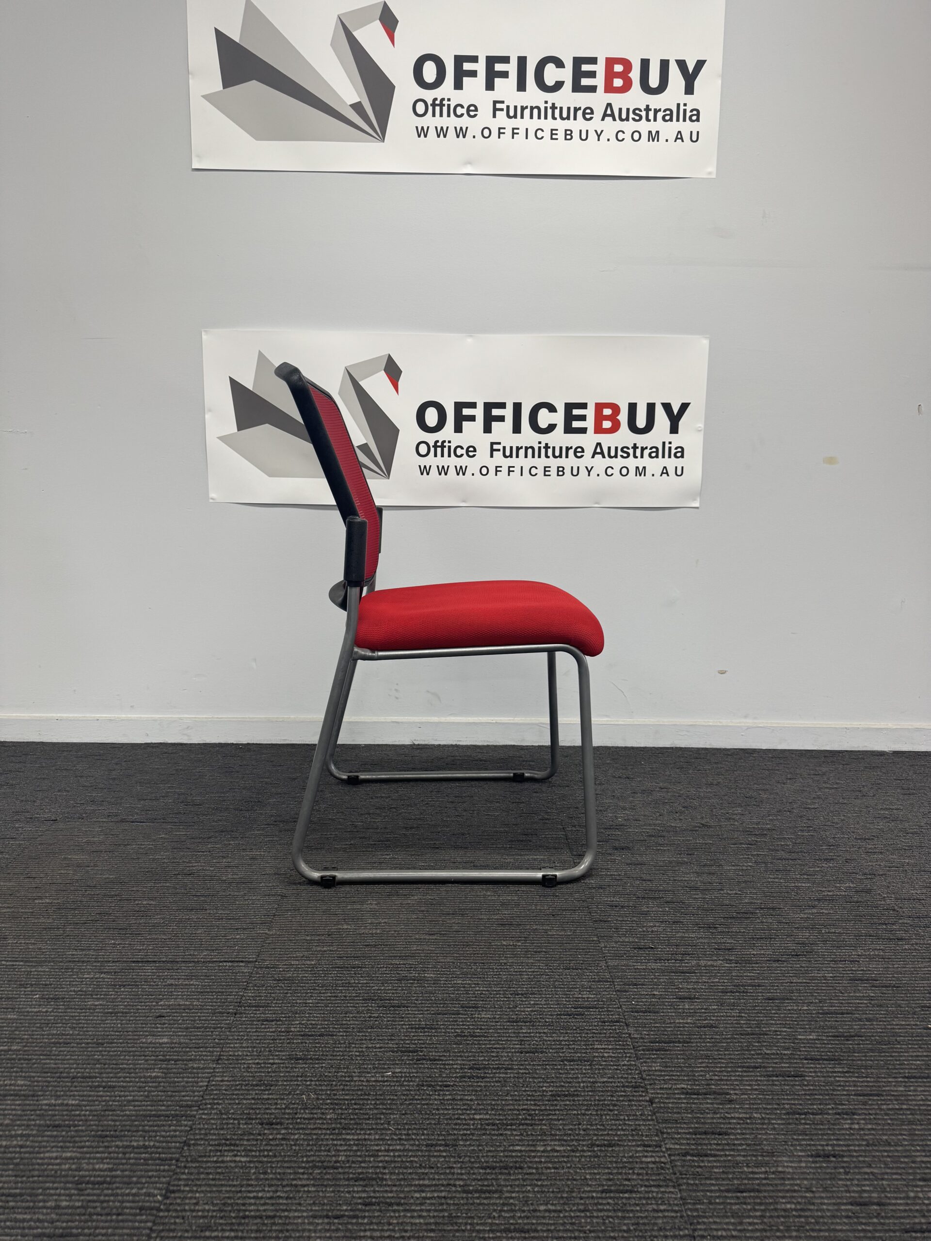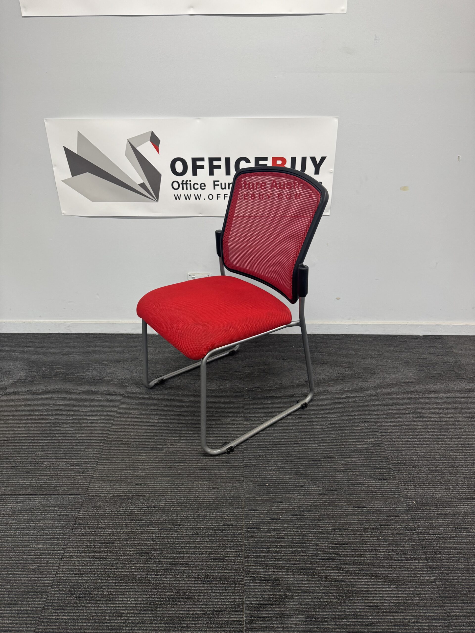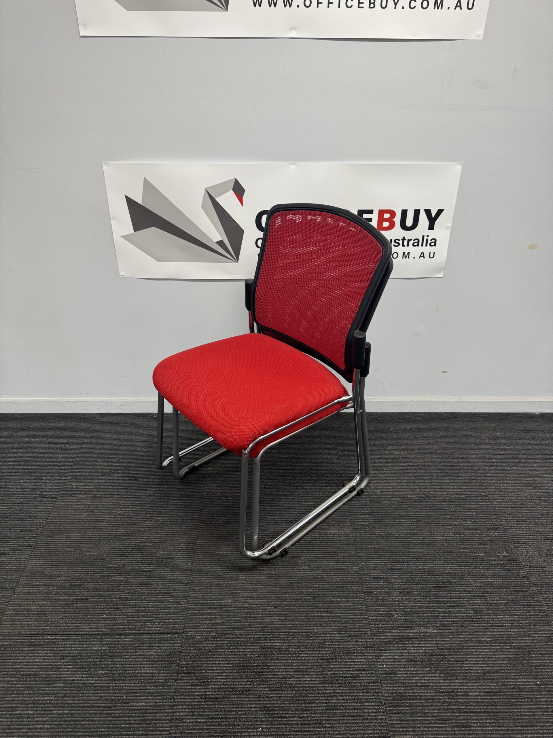 🪑 Second Hand STATELINE Stackable Visitor Chair – Red (Mesh Back)