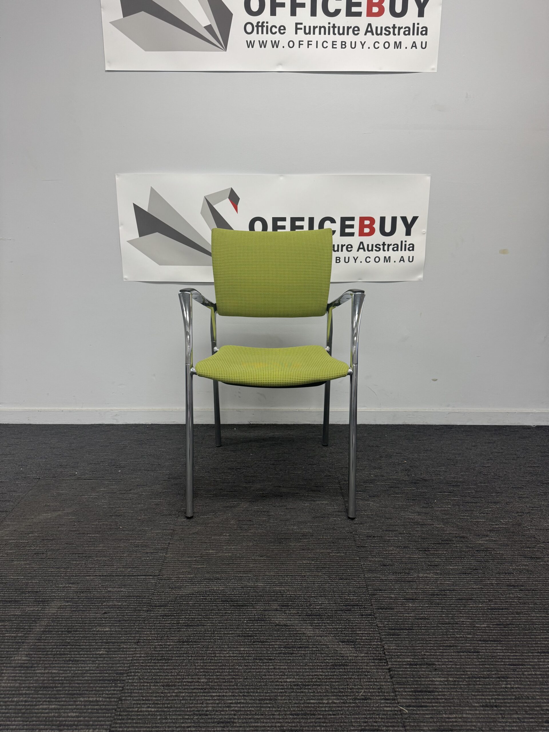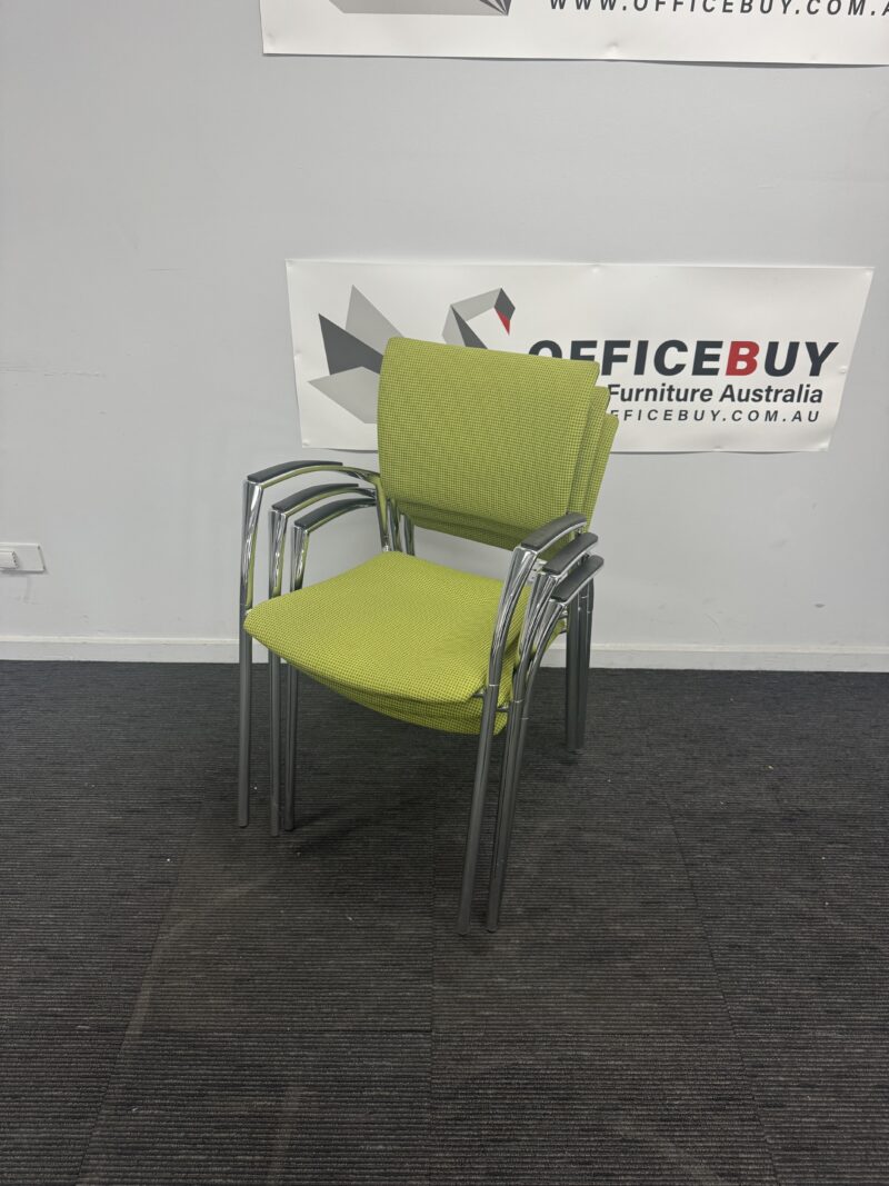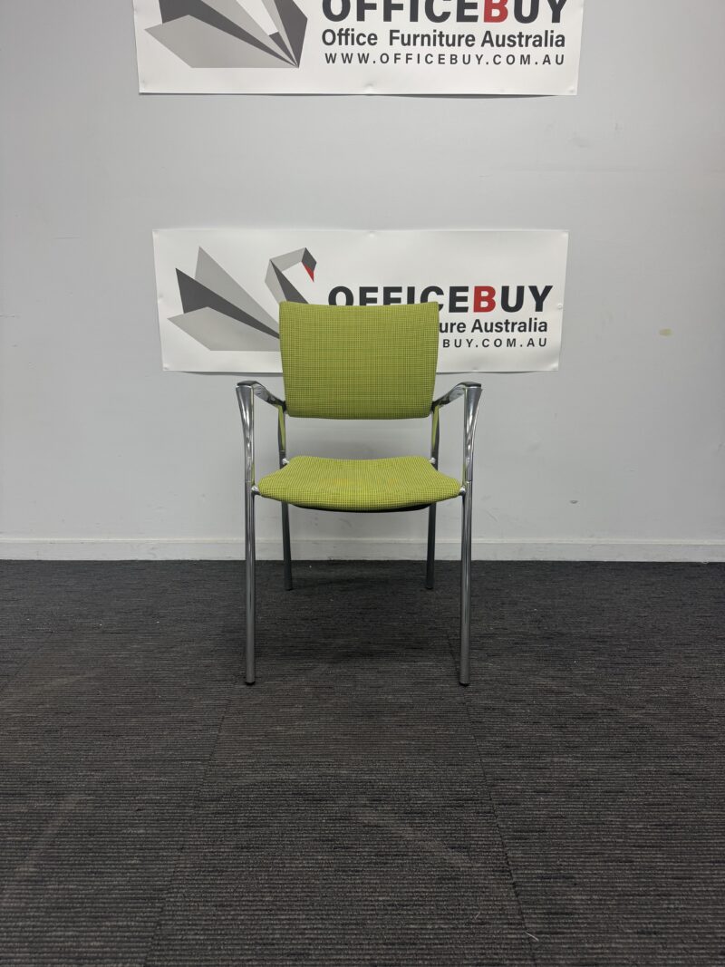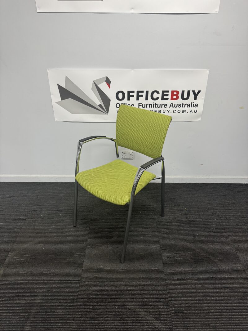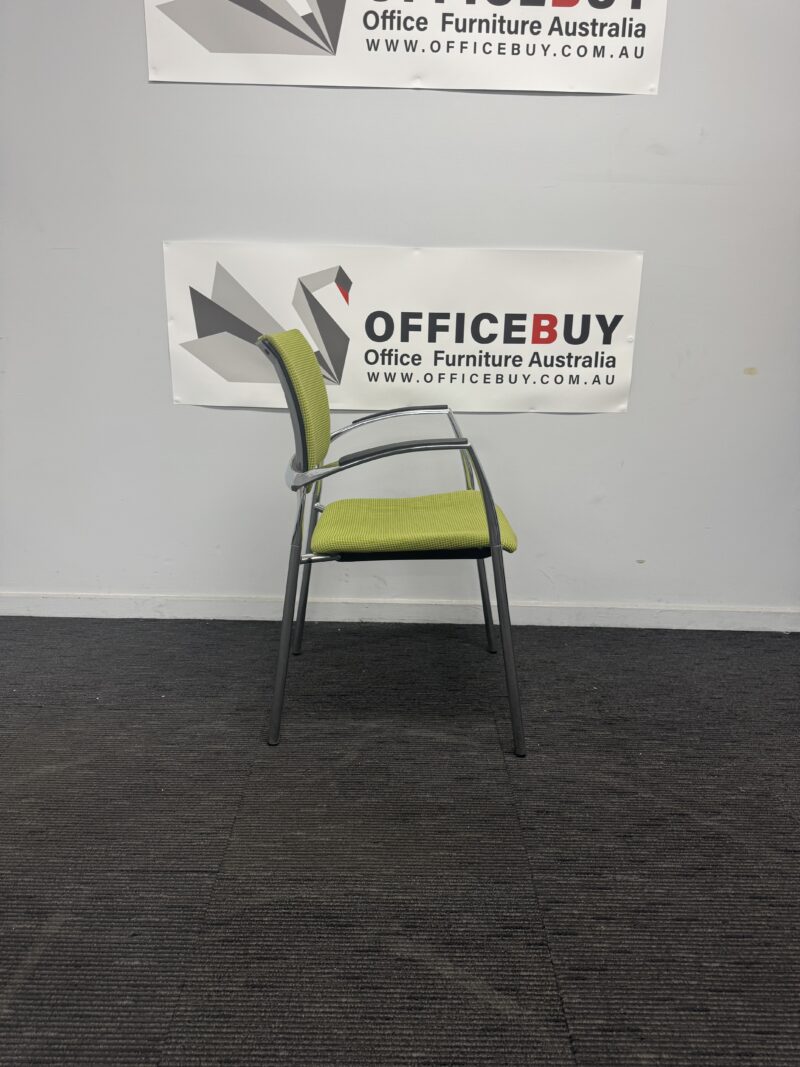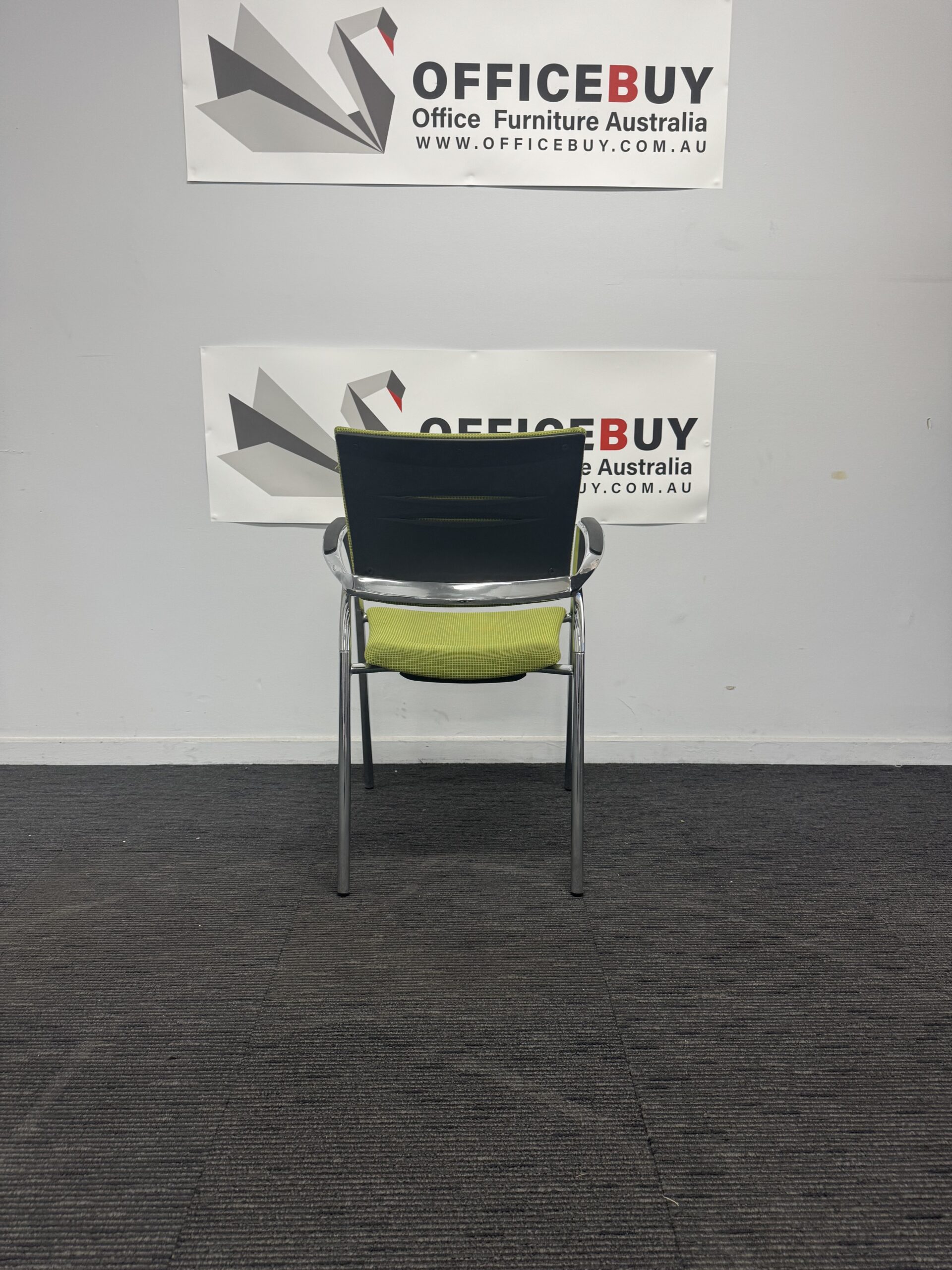 Stackable Visitor Chair with Armrests – Lime Seat with Chrome Base (Second Hand, Good Condition)