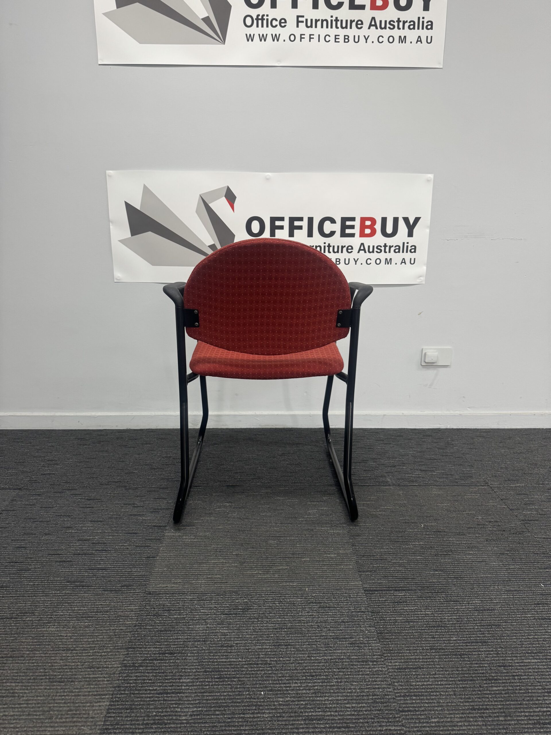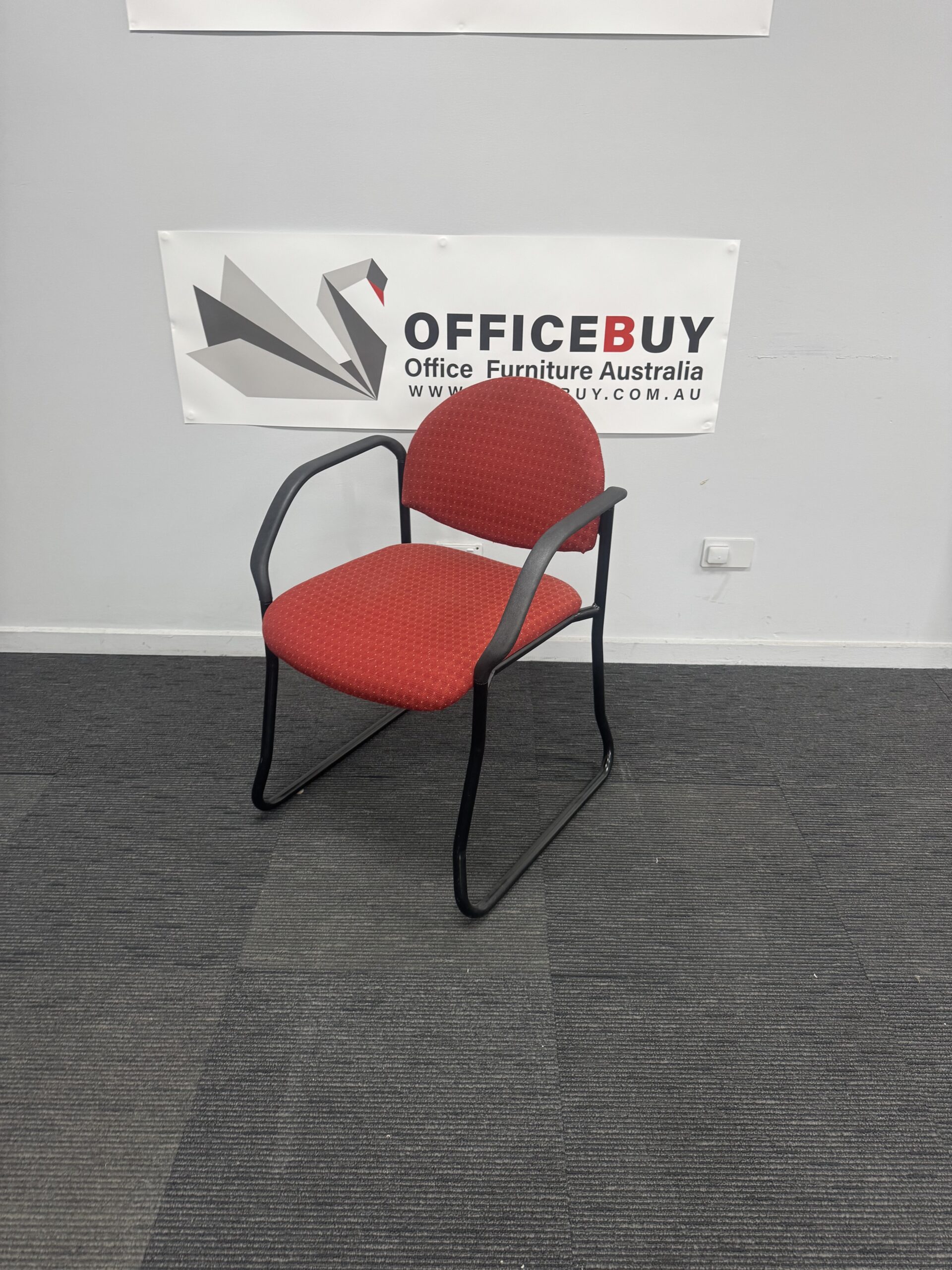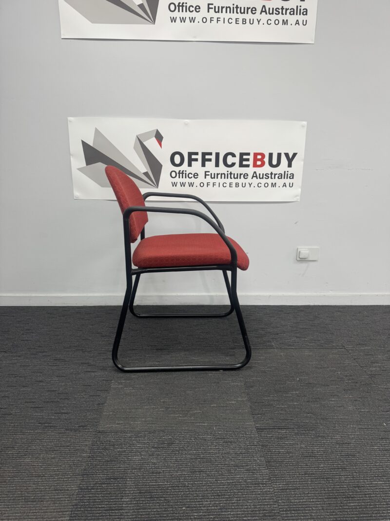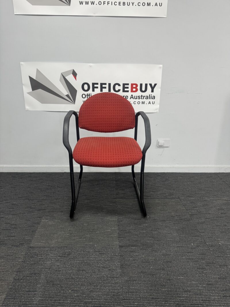 Second Hand Visitor Chair with Armrests-Red Seat and Black Legs