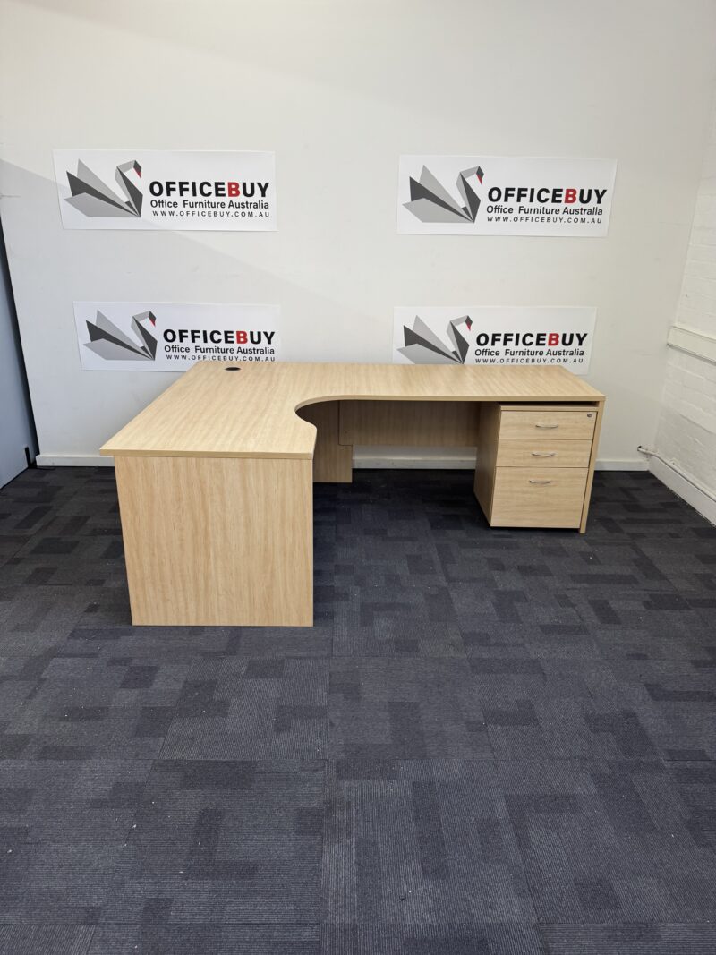 Second Hand Corner Workstation with Mobile Drawer Unit-Lemon Tree-2100mm x 1650mm