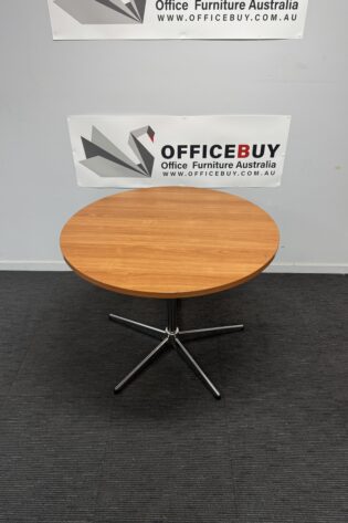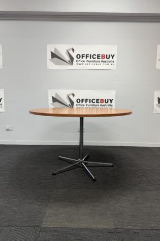 Elevate your space with this bold and functional round table! In second-hand but good condition, it features a high-quality ironstone timber top paired with a sturdy black steel base – perfect for meeting rooms, dining areas, or creative spaces.
