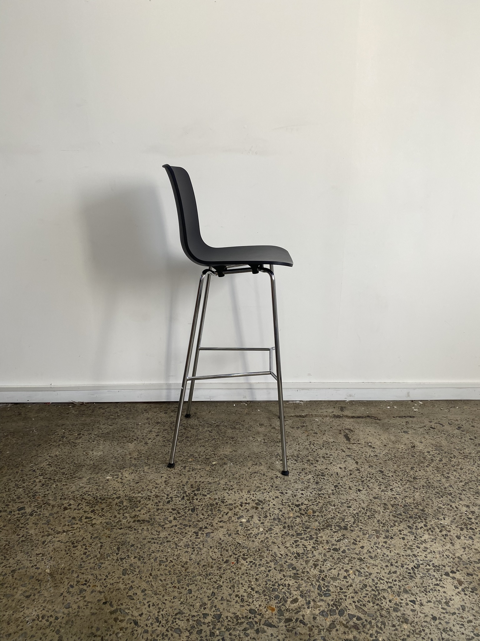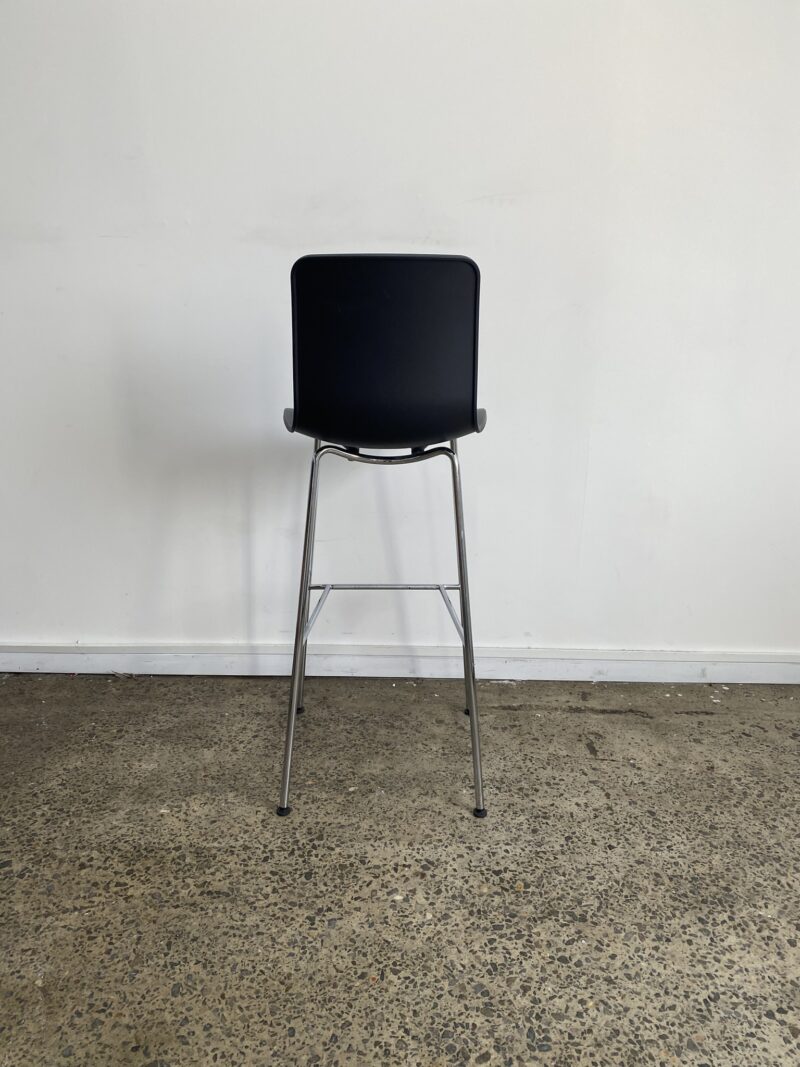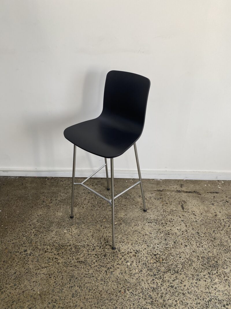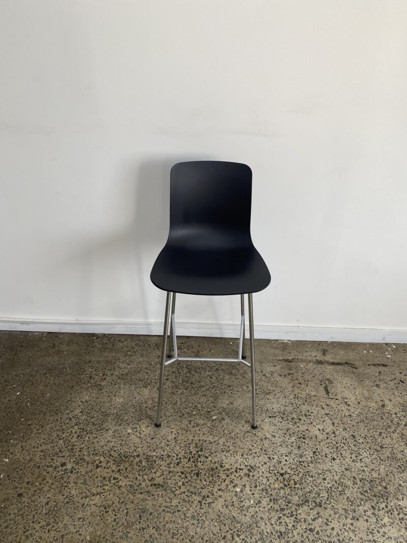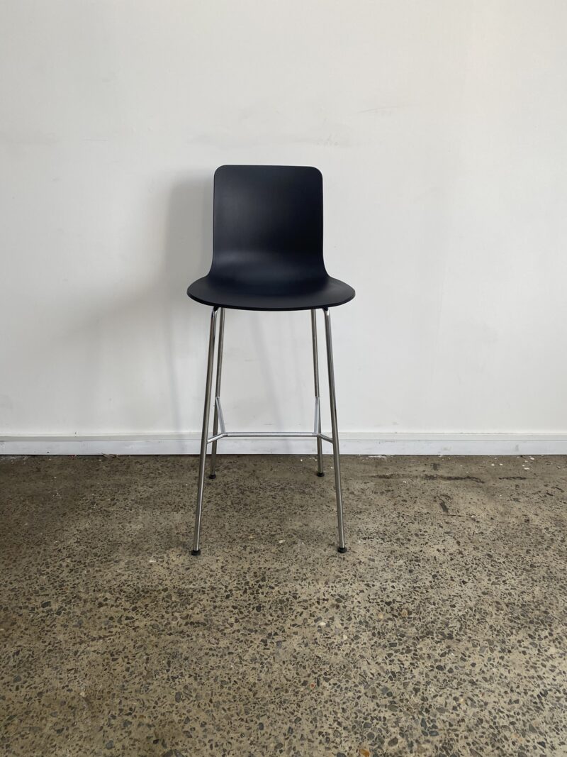 - The HAL bar stool offers functional style with a supportive seat and tall tubular steel base